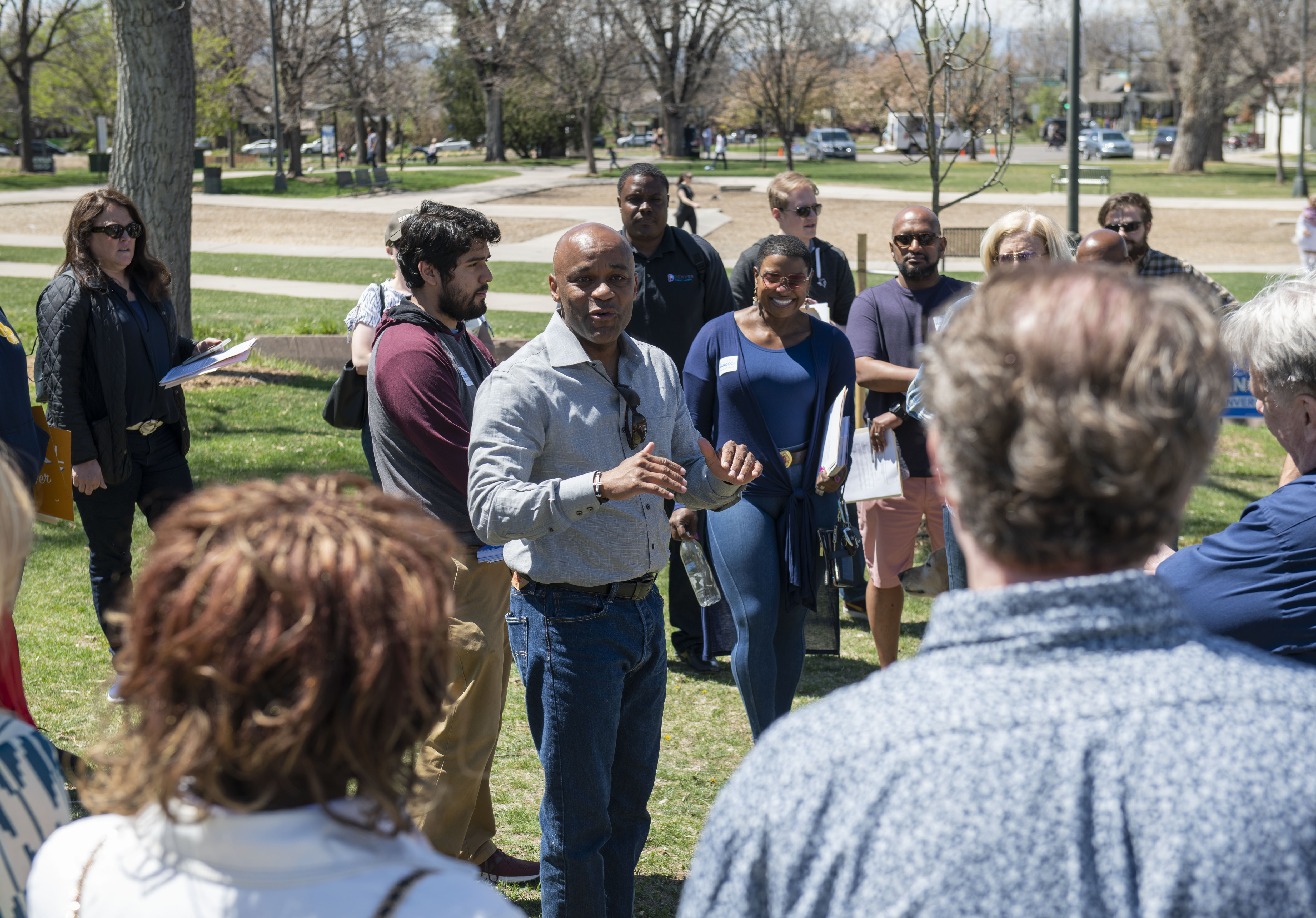 “And I’ve never forgot … that our greatest momentum comes when we knock on a door and have those conversations with people and remind them what Denver’s about and how far we’ve come and where we still need to go,” he tells the volunteers.