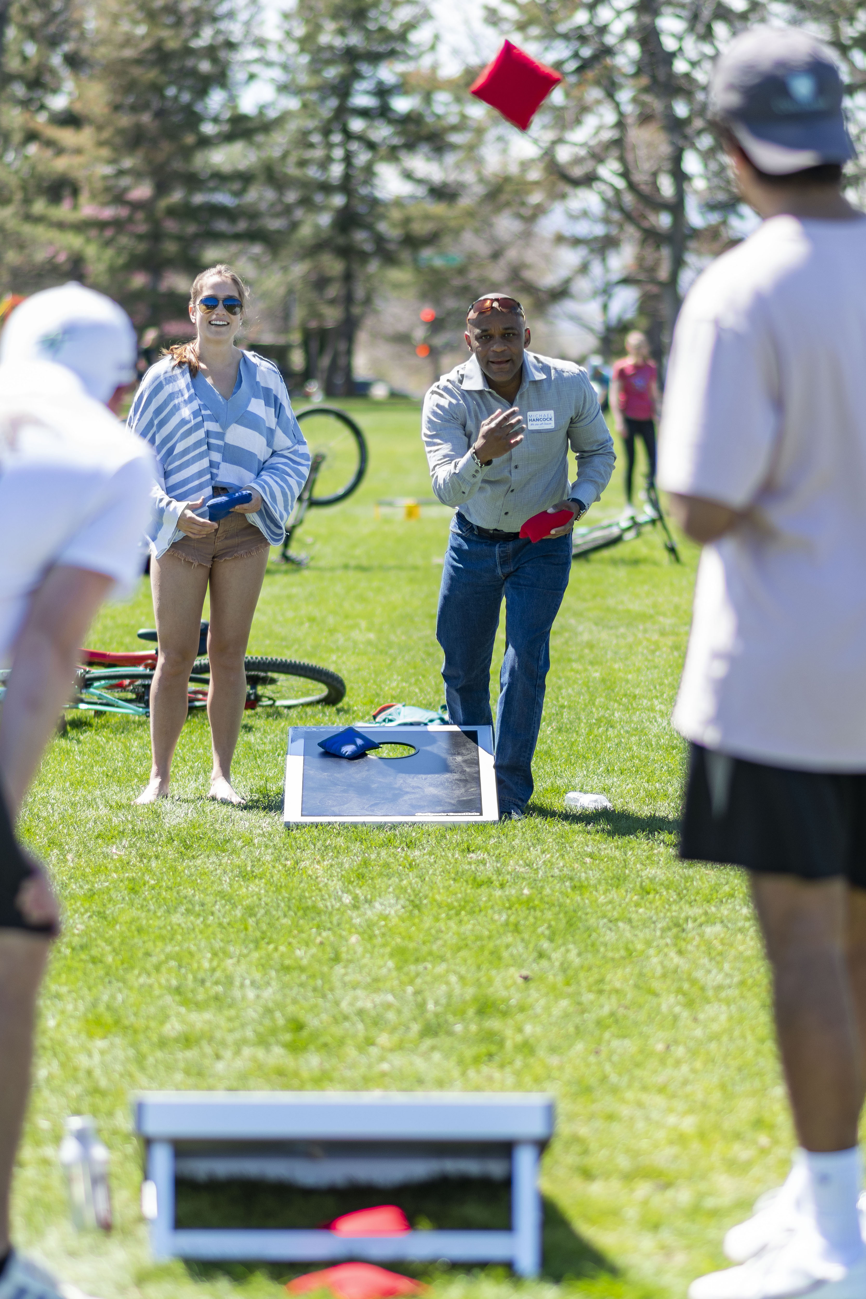 “I know it’s obviously campaign driven,” Goodman says. “But seeing him out in Wash Park. Everyone’s having a fun day today. It’s cool that he would stop by and play Cornhole with us.”