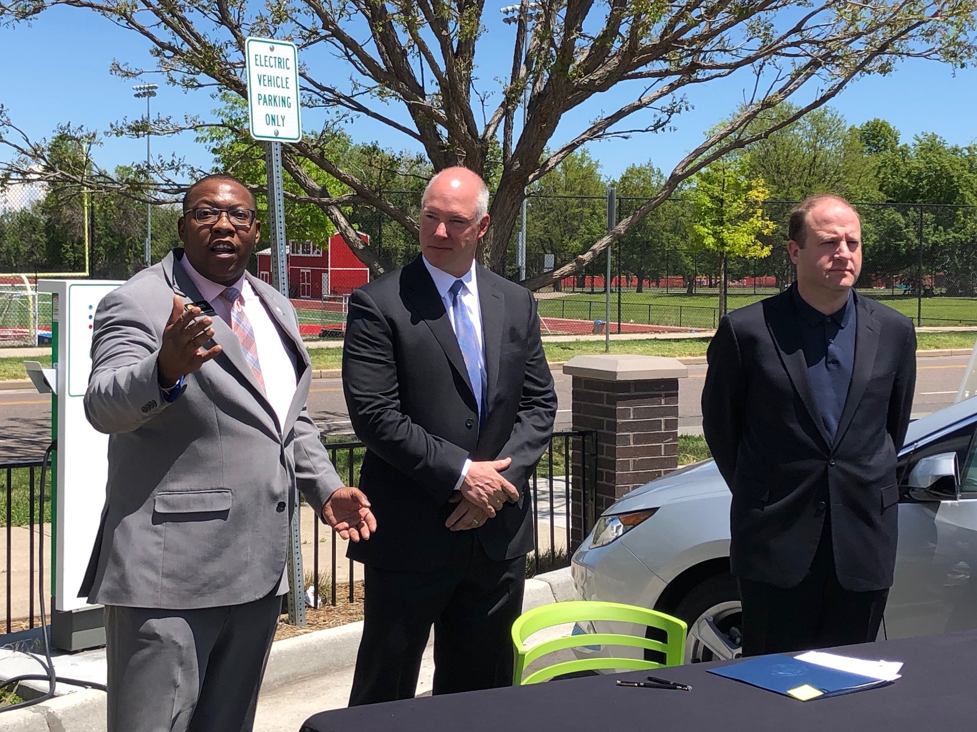 “Electric vehicles are a great choice, a cost-effective choice,” the governor said after arriving as a passenger in an electric vehicle that parked in front of a charging station at the Carla Madison Recreation Center in Denver.