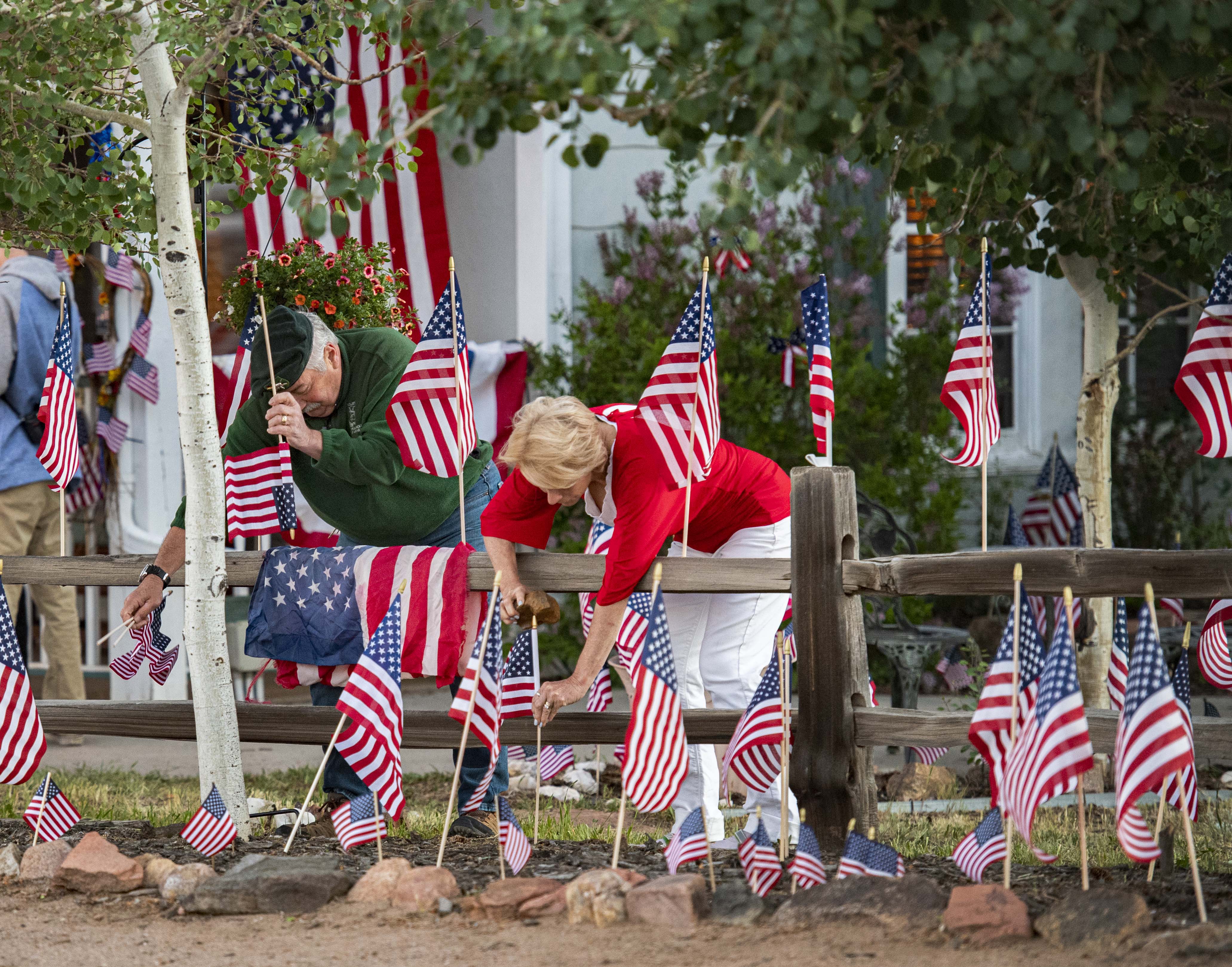 She helped organize Thursday’s memorial alongside Boehr, a fellow military wife. One of the first to plant flags was Don Barton, a retiree of the 10th Special Forces Group, a Green Beret before Robbins. He and his wife have been mentors to the young couple.