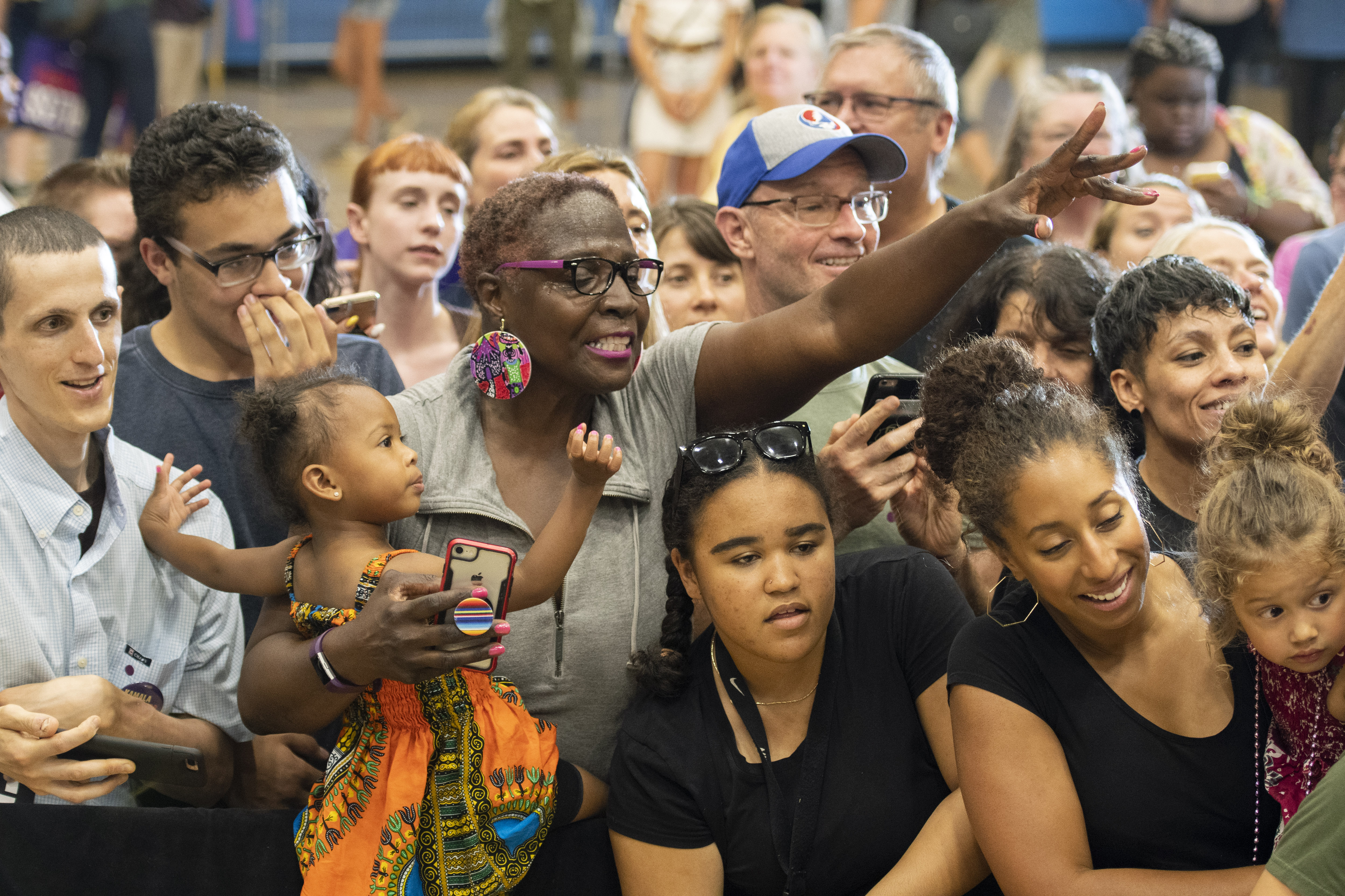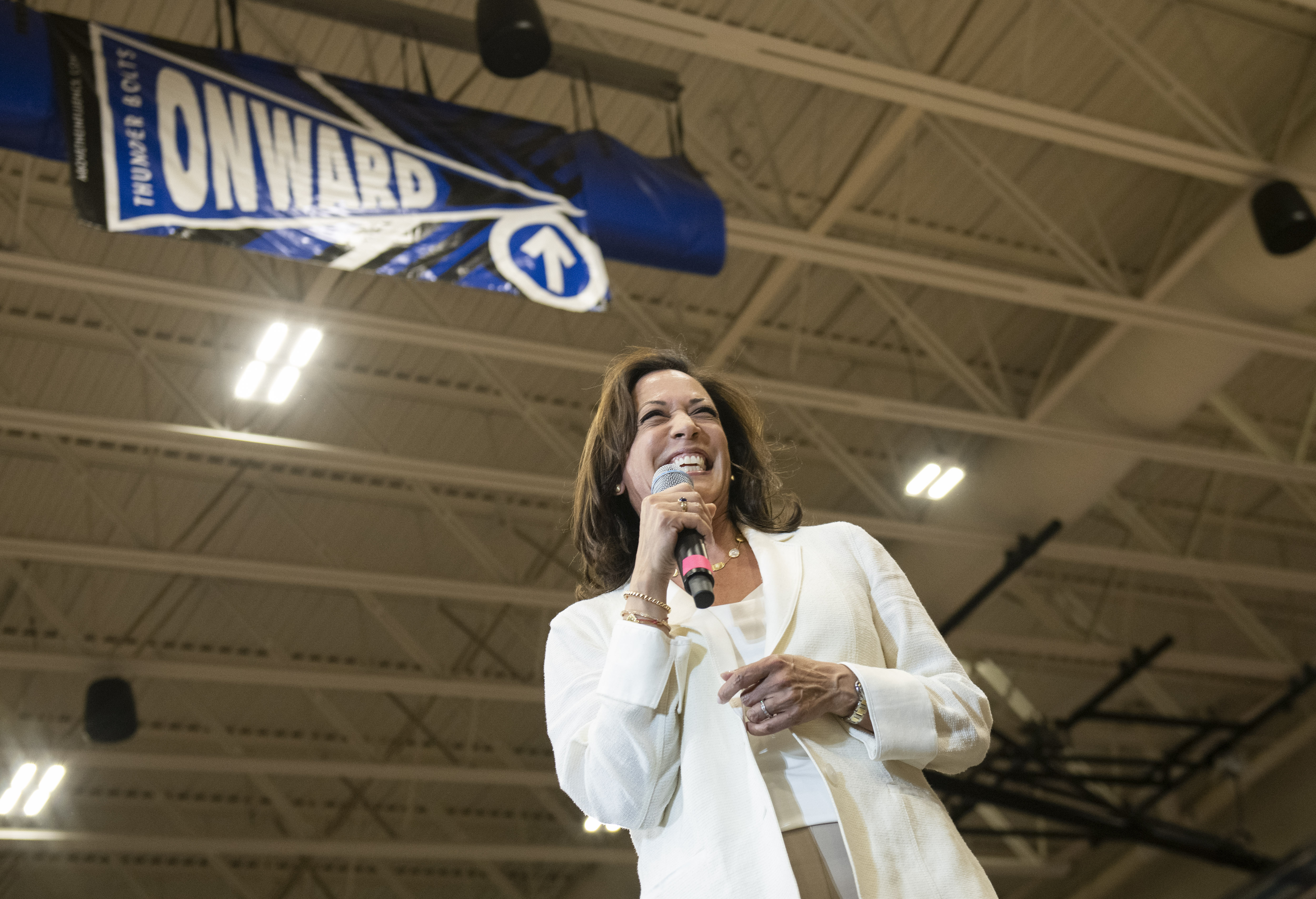 “We are going to successfully prosecute the case against four more years of -” Harris, among the frontrunners in the Democratic primary field, told a crowd estimated at 2,300 in a sweltering Manual High School gymnasium, her words drowned out by applause and cheers.