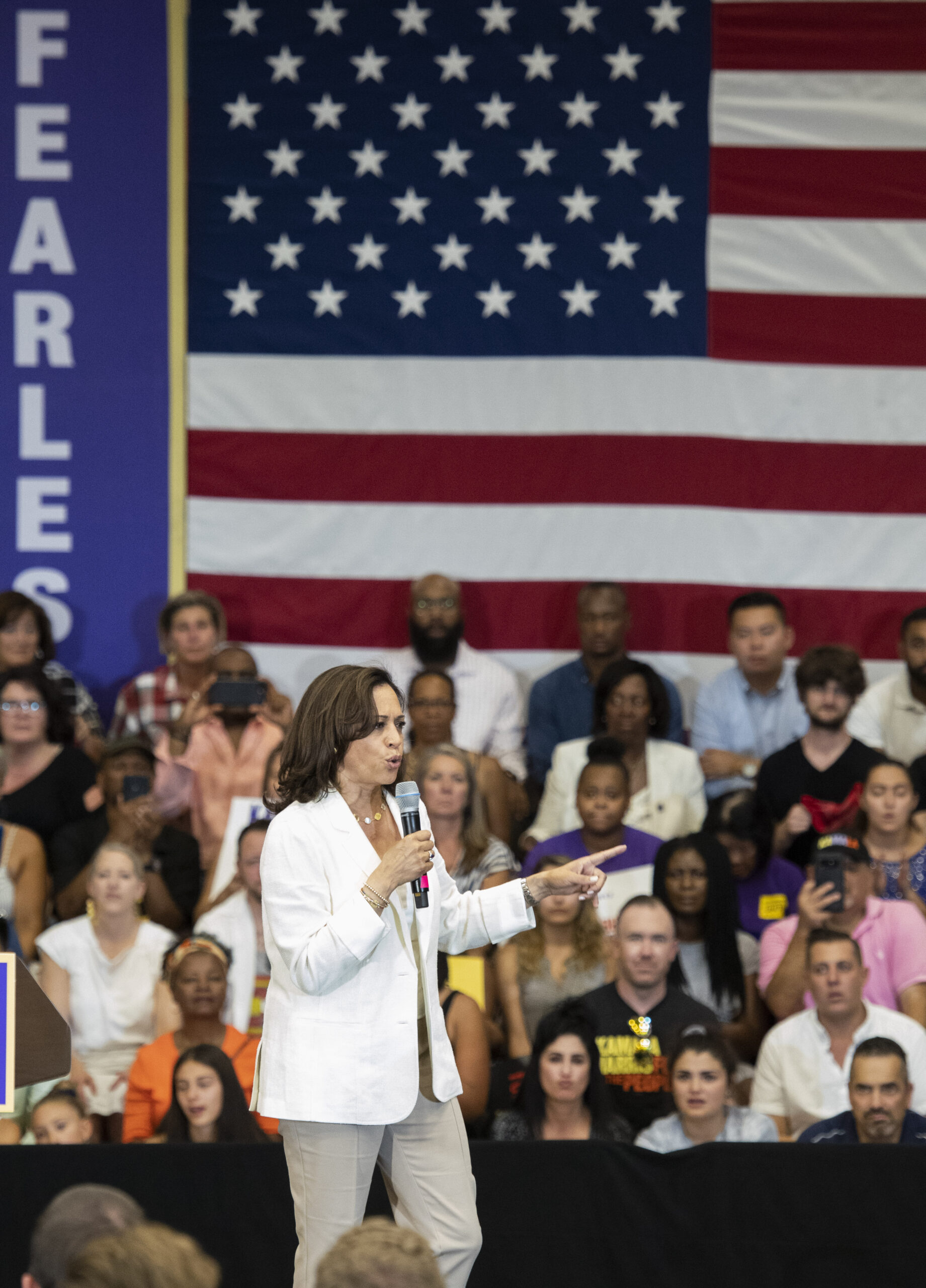 Saying Trump is among “a group of folks busy pushing science fiction instead of science fact,” Harris called climate change “an existential threat to who we are as a species” and said the United States will be on track to “achieve a carbon-neutral state” by 2030 under a Harris administration.