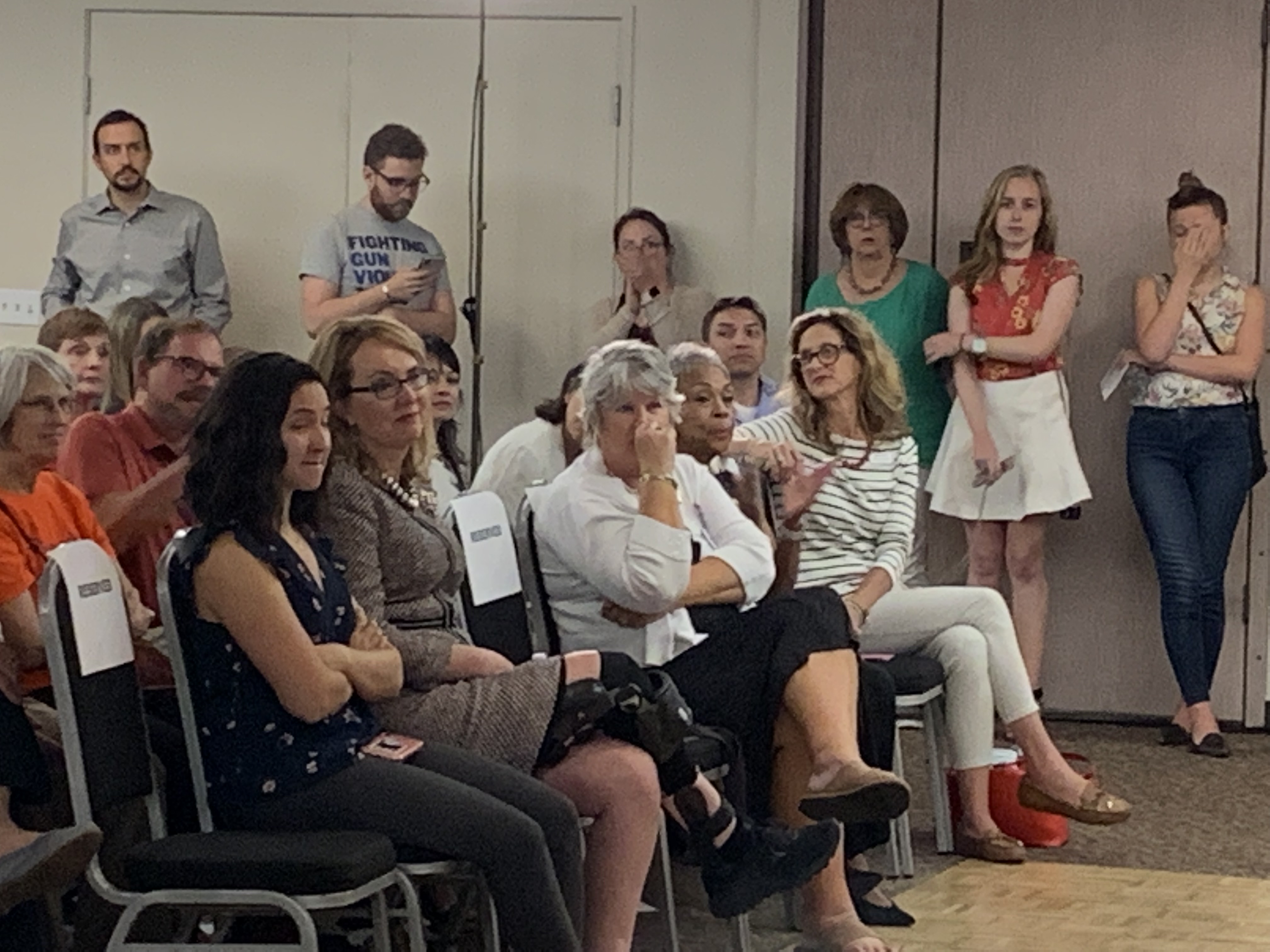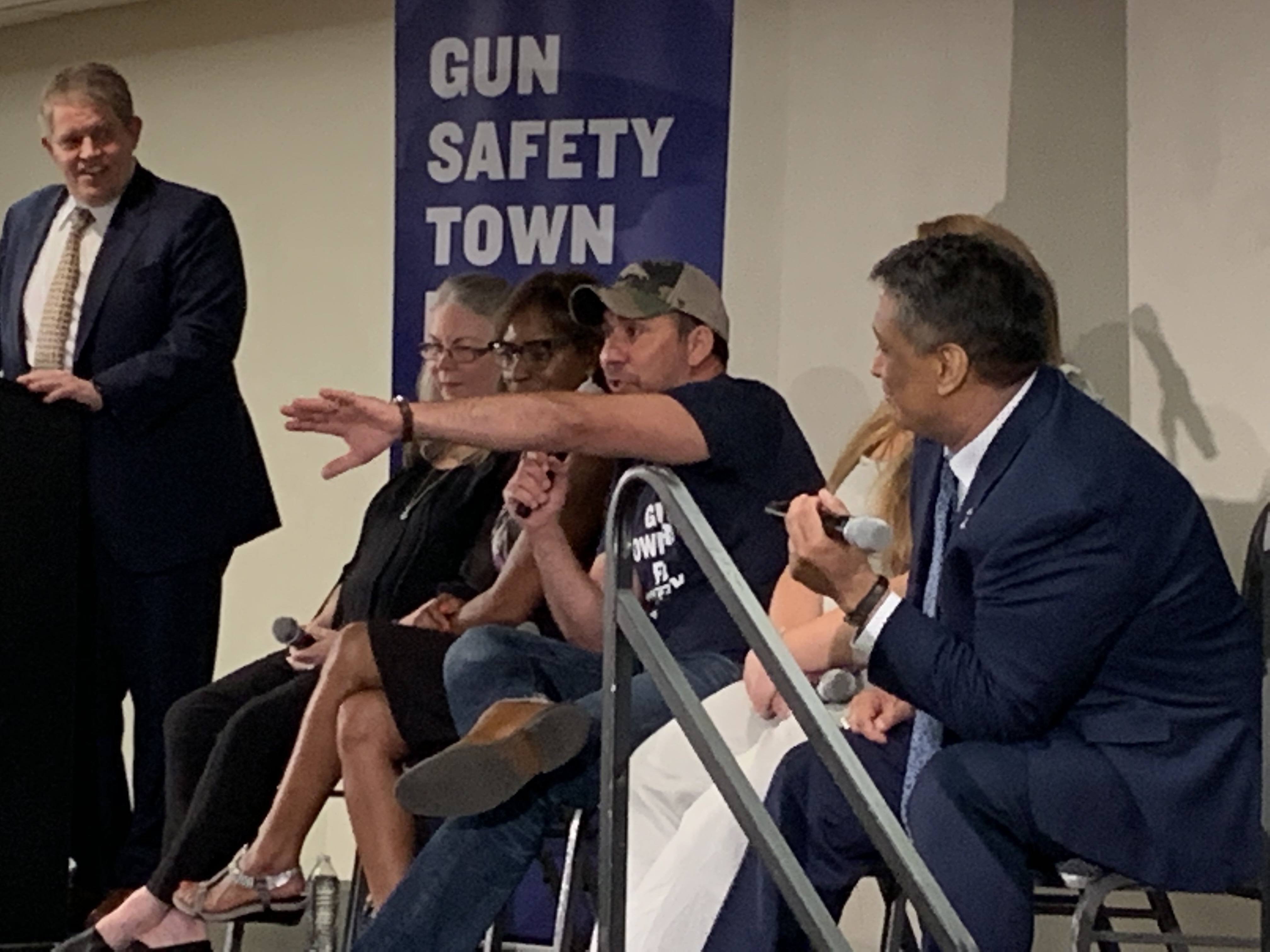 The Gun Safety Town Hall drew a standing-room-only audience of more than 300 to the Aurora Association of Realtors offices, amid heavy security.