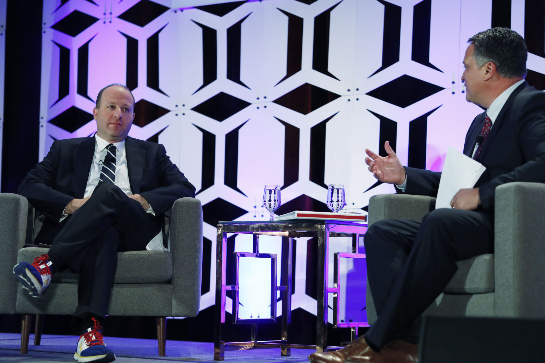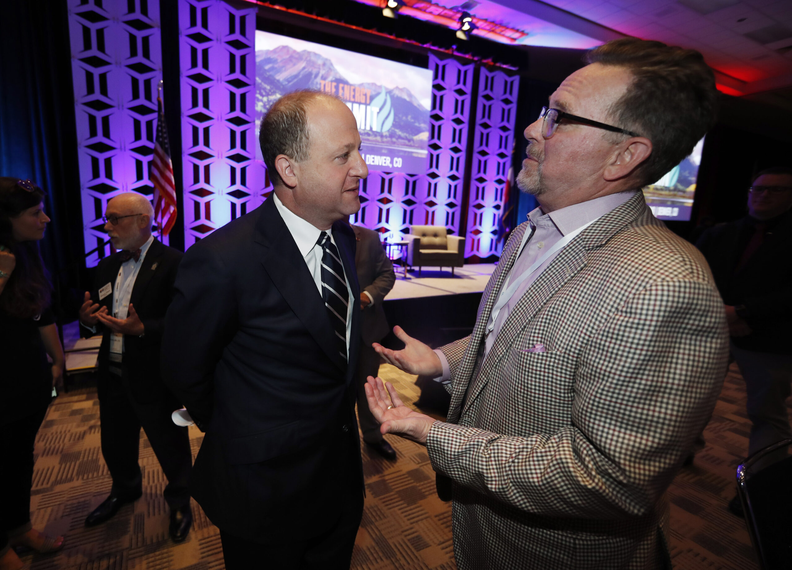 Gov. Jared Polis faced tough questions Wednesday from the oil and gas industry during a luncheon chat with Dan Haley, executive director of the Colorado Oil and Gas Association.
