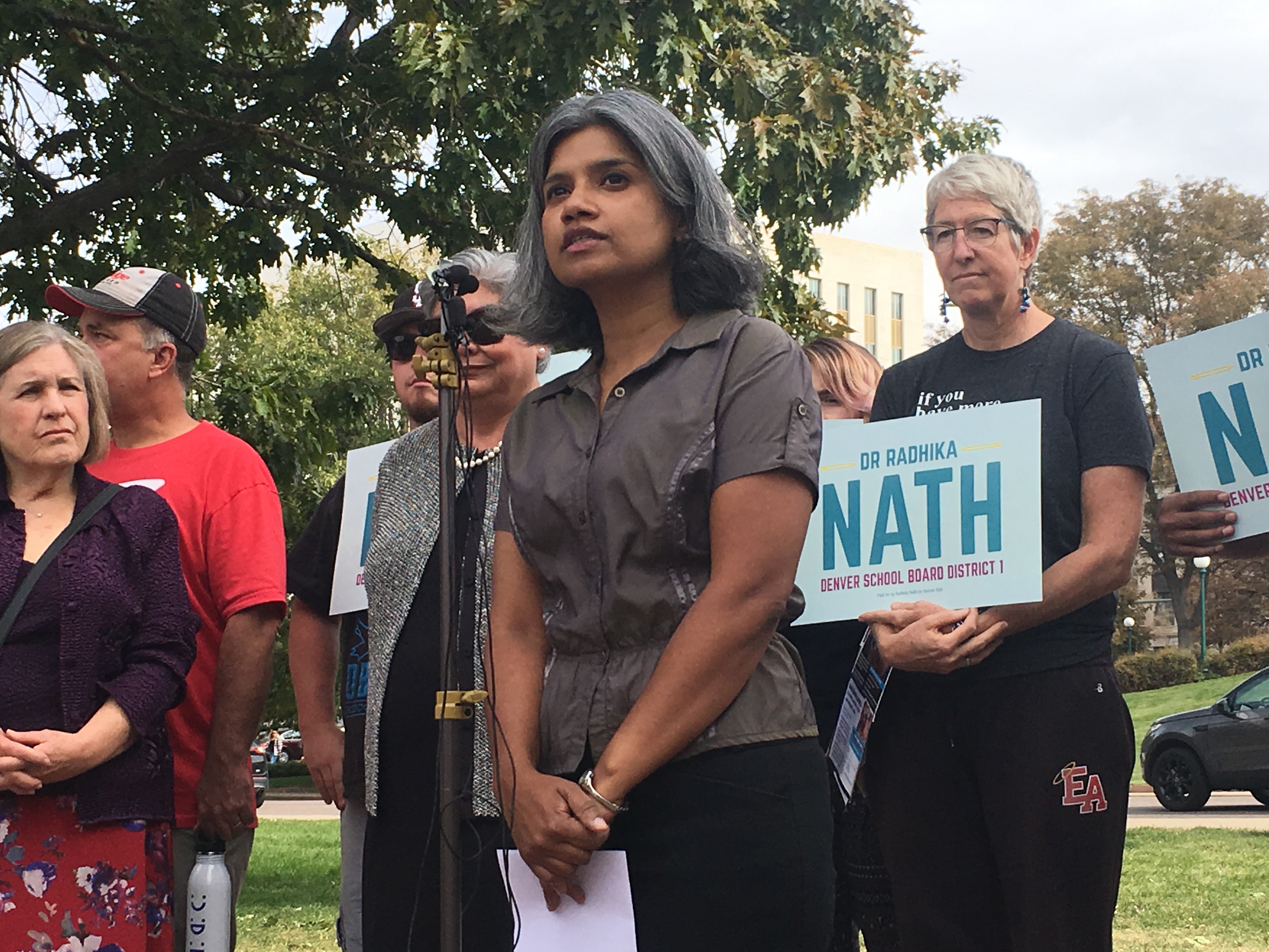 Radhika Nath, a Denver school board candidate, on Thursday decried her opponents’ lopsided fundraising and called on state lawmakers to institute campaign finance reforms for school board races.