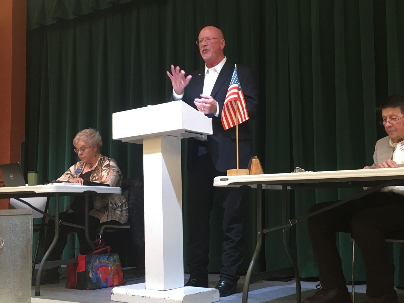 “What I’m hoping to do is get as much information as to how you want me to be your representative,” said Champion, after winning 38 votes against his opponent, Brenda Stokes. He added, “I can’t wait to go after the bad guys in November for the election.”
