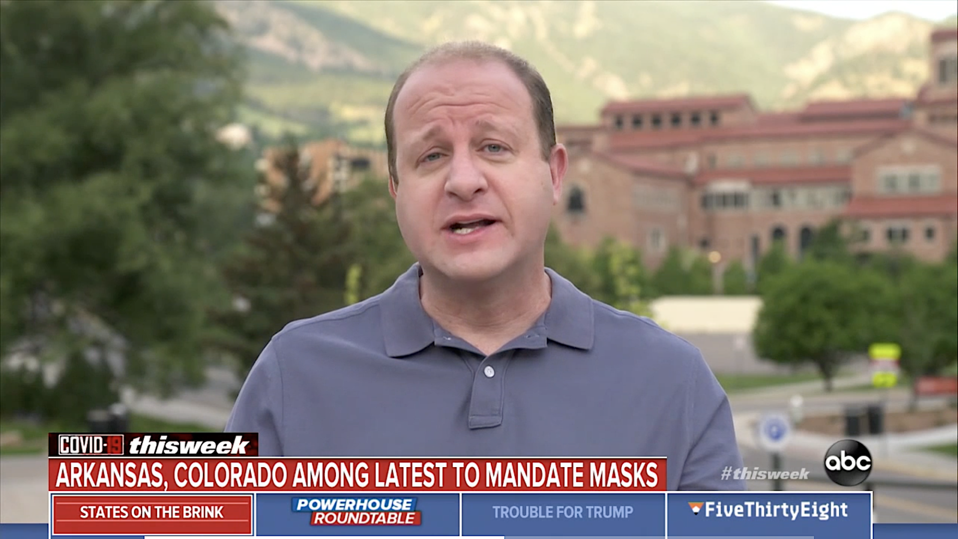 Co-anchor Martha Raddatz introduced Polis by characterizing Colorado as “on a knife’s edge” with an uptick in cases and hospitalizations.