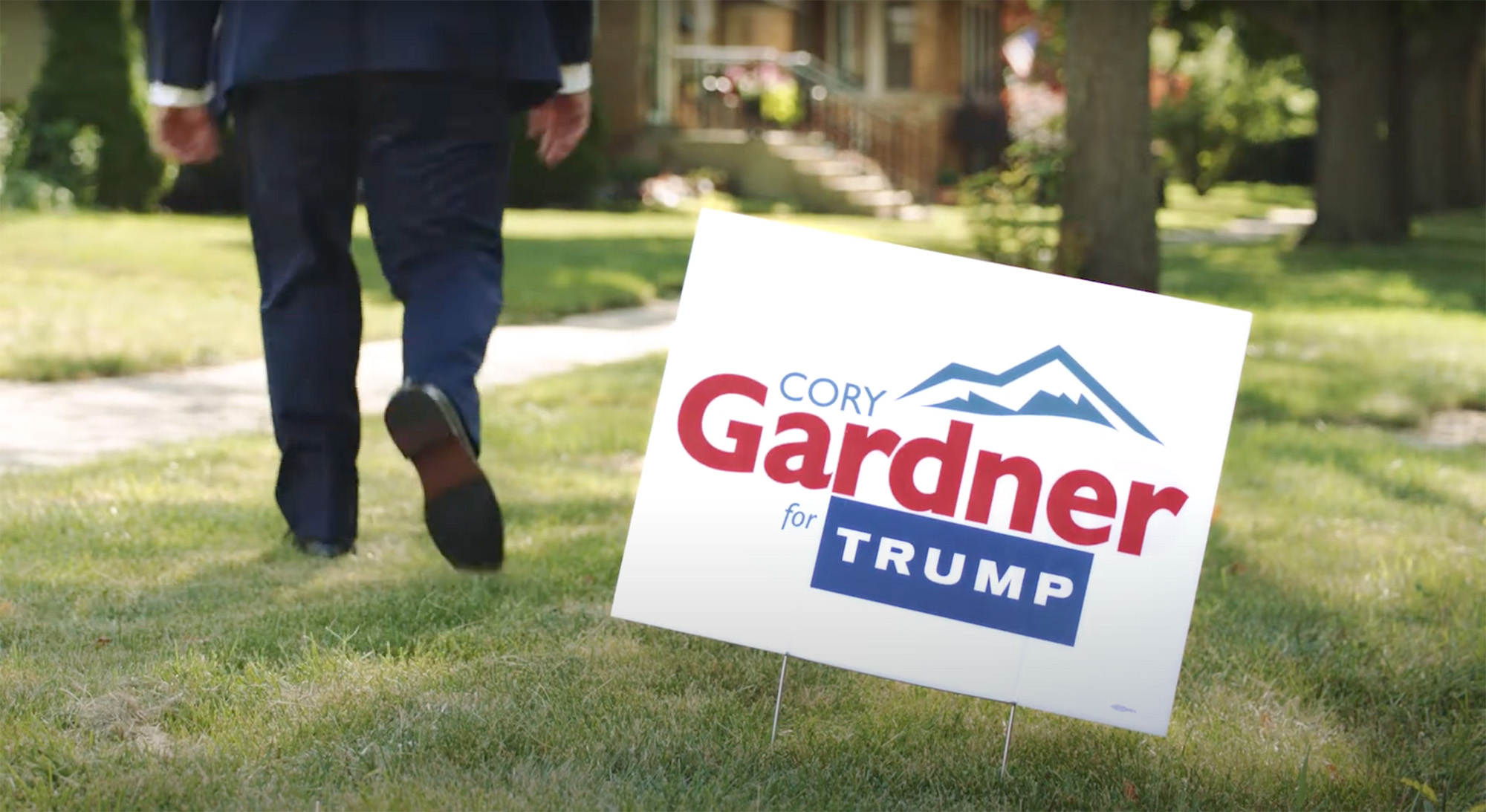 “What happened to Cory Gardner? Gardner promised he’d put Coloradans first, but then he had a change of plans,” says the ad’s narrator, as an actor who bears a resemblance to Gardner replaces “Colorado” with “Trump” on a yard sign and bumper sticker.