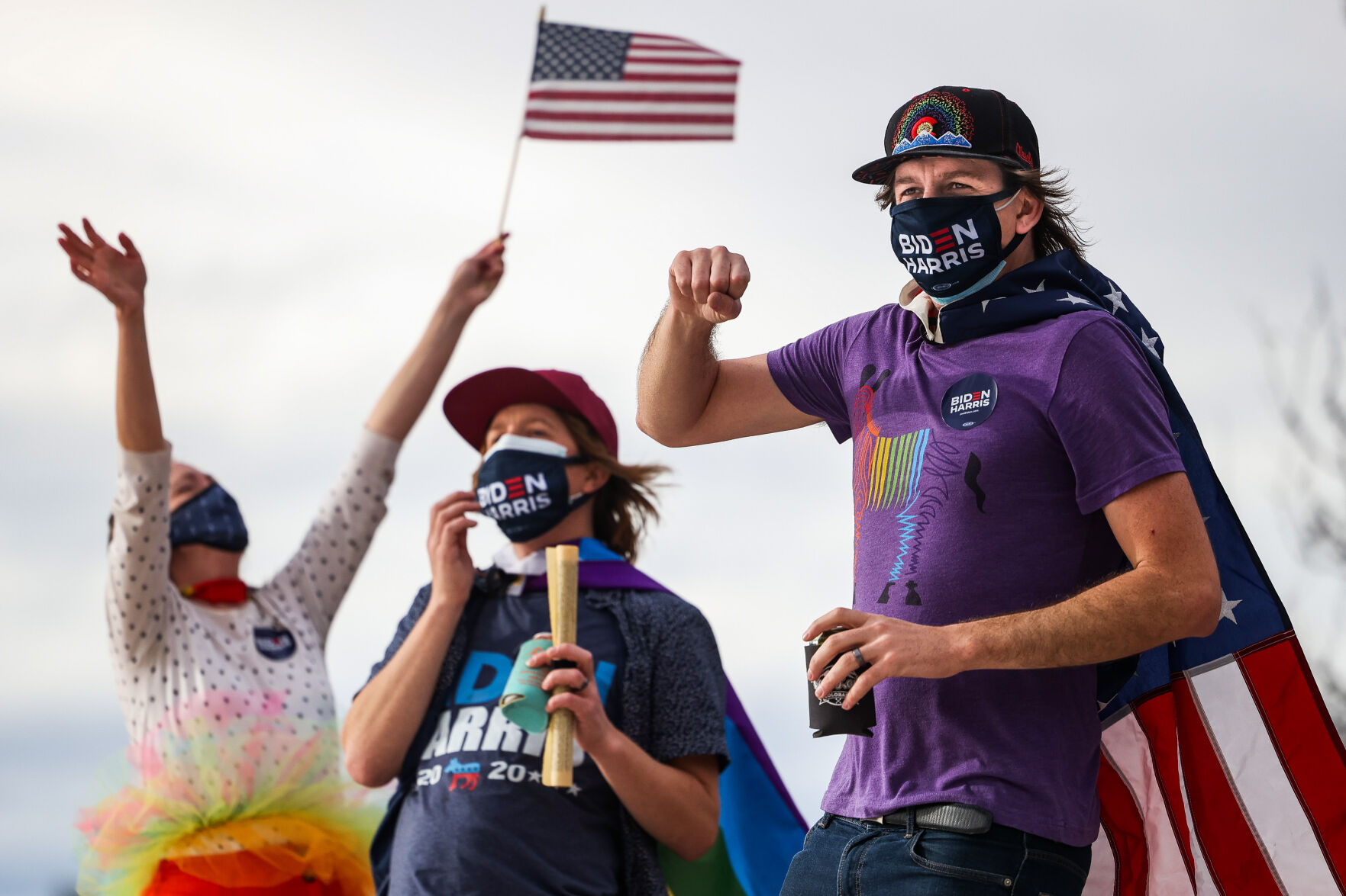 People celebrate the announcement that Joe Biden was elected as the next president of the United States according to multiple news sources Saturday, Nov. 7, 2020 at Cheeseman Park in Denver. (Michael Ciaglo/Special to The Denver Gazette)Michael Ciaglo/Special to The DeBrent Walker picks up his boyfriend Ezra Comesario and kisses him during a celebration of the victory of Democratic candidate Joseph Biden at the intersection of Lincoln Street and 13th Avenue in downtown Denver, Colo., on Saturday, Nov. 7, 2020. (Chancey Bush/ The Gazette)Chancey Bush The GazetteJohn Warner sports an American flag speedo on the steps of the State Capitol building after Democratic candidate Joseph Biden victory is announced in downtown Denver, Colo., on Saturday, Nov. 7, 2020. (Chancey Bush/ The Gazette)Chancey Bush The GazetteTensions rise as a Trump supporters exchanges words with Biden supporters at the Colorado State Capitol building in downtown Denver, Colo., on Saturday, Nov. 7, 2020. (Chancey Bush/ The Gazette)Chancey Bush The GazetteThe Toledo family celebrates the victory of Democratic candidate Joseph Biden at the intersection of Lincoln Street and 13th Avenue in downtown Denver, Colo., on Saturday, Nov. 7, 2020. (Chancey Bush/ The Gazette)Chancey Bush The GazettePeople celebrate the victory of Democratic candidate Joseph Biden at the intersection of Lincoln Street and 13th Avenue in downtown Denver, Colo., on Saturday, Nov. 7, 2020. (Chancey Bush/ The Gazette)Chancey Bush The GazetteTensions rise as a Trump supporter, who declined to give his name, exchanges words with Biden supporters at the Colorado State Capitol building in downtown Denver, Colo., on Saturday, Nov. 7, 2020. (Chancey Bush/ The Gazette)Chancey Bush The GazetteKirk Sarell wears buttons on his jacket as people celebrate the announcement that Joe Biden was elected as the next president of the United States according to multiple news sources Saturday, Nov. 7, 2020 at Cheeseman Park in Denver. (Michael Ciaglo/Special to The Denver Gazette)Michael Ciaglo/Special to The DeDressed as an eagle, Taylor Soderborg dances as people celebrate the announcement that Joe Biden was elected as the next president of the United States according to multiple news sources Saturday, Nov. 7, 2020 at Cheeseman Park in Denver. (Michael Ciaglo/Special to The Denver Gazette)Michael Ciaglo/Special to The DeBeck the dog wears a “Voters decide” shirt as people celebrate the announcement that Joe Biden was elected as the next president of the United States according to multiple news sources Saturday, Nov. 7, 2020 at Cheeseman Park in Denver. (Michael Ciaglo/Special to The Denver Gazette)Michael Ciaglo/Special to The DeA couple walks past graffiti reading, “Vote him out” as people celebrate the announcement that Joe Biden was elected as the next president of the United States according to multiple news sources Saturday, Nov. 7, 2020 at Cheeseman Park in Denver. (Michael Ciaglo/Special to The Denver Gazette)Michael Ciaglo/Special to The DeRichard Buchanan, left, and Yves Murad wave Biden flags as people celebrate the announcement that Joe Biden was elected as the next president of the United States according to multiple news sources Saturday, Nov. 7, 2020 at Cheeseman Park in Denver. (Michael Ciaglo/Special to The Denver Gazette)Michael Ciaglo/Special to The DeA woman holds a, “Trump for prison 2020” sign as people celebrate the announcement that Joe Biden was elected as the next president of the United States according to multiple news sources Saturday, Nov. 7, 2020 at Cheeseman Park in Denver. (Michael Ciaglo/Special to The Denver Gazette)Michael Ciaglo/Special to The DeA man in a speedo dances as people celebrate the announcement that Joe Biden was elected as the next president of the United States according to multiple news sources Saturday, Nov. 7, 2020 at Cheeseman Park in Denver. (Michael Ciaglo/Special to The Denver Gazette)Michael Ciaglo/Special to The DeDogs play with a Donald Trump toy as people celebrate the announcement that Joe Biden was elected as the next president of the United States according to multiple news sources Saturday, Nov. 7, 2020 at Cheeseman Park in Denver. (Michael Ciaglo/Special to The Denver Gazette)Michael Ciaglo/Special to The DeRachel Shea holds a sign as people celebrate the announcement that Joe Biden was elected as the next president of the United States according to multiple news sources Saturday, Nov. 7, 2020 at Cheeseman Park in Denver. (Michael Ciaglo/Special to The Denver Gazette)Michael Ciaglo/Special to The De