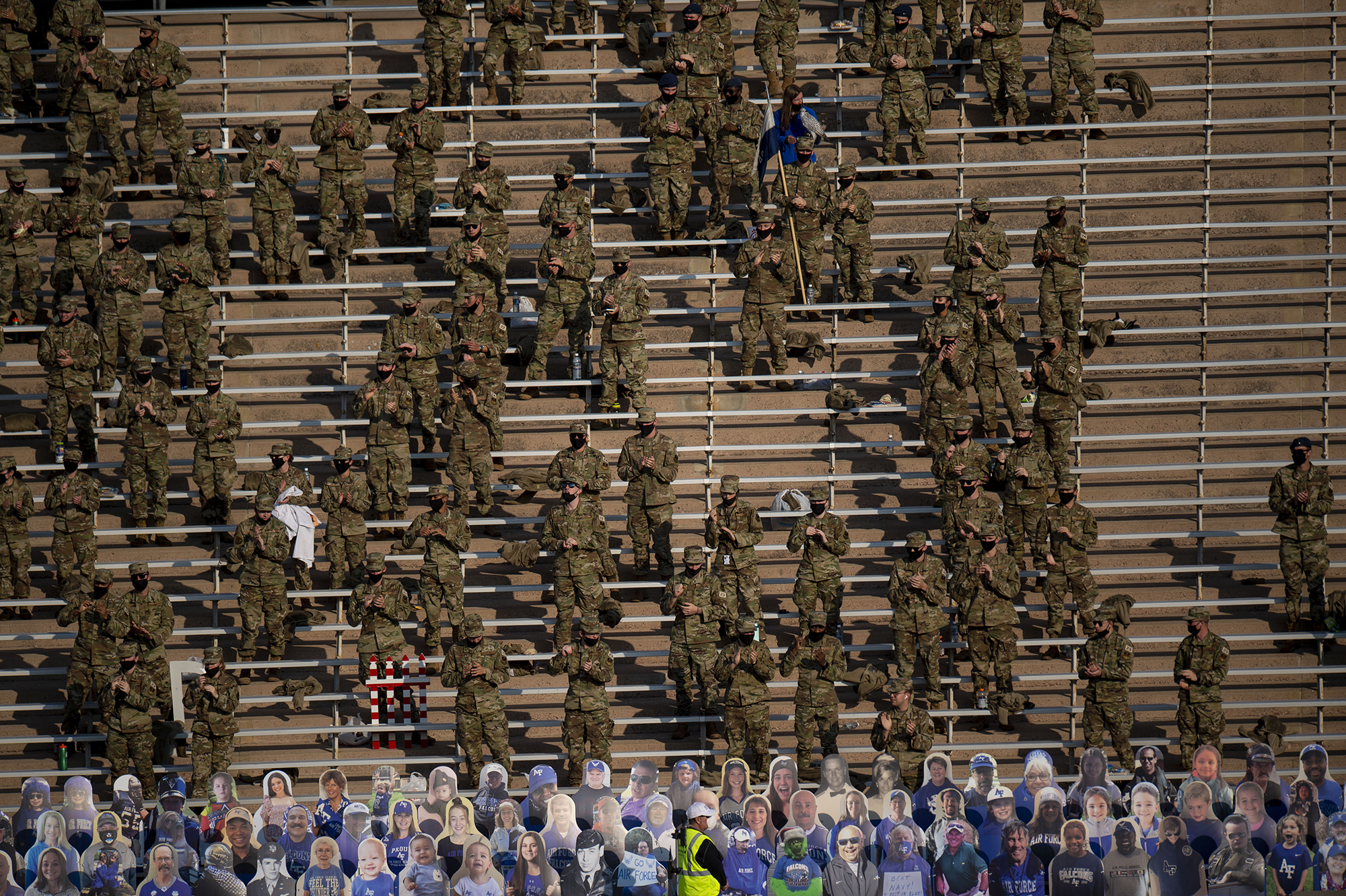Before the surge hit, the academy was functioning much as it had for years, with cadets gathering for communal meals, attending military drills and even cheering its football team in an otherwise-empty Falcon Stadium.