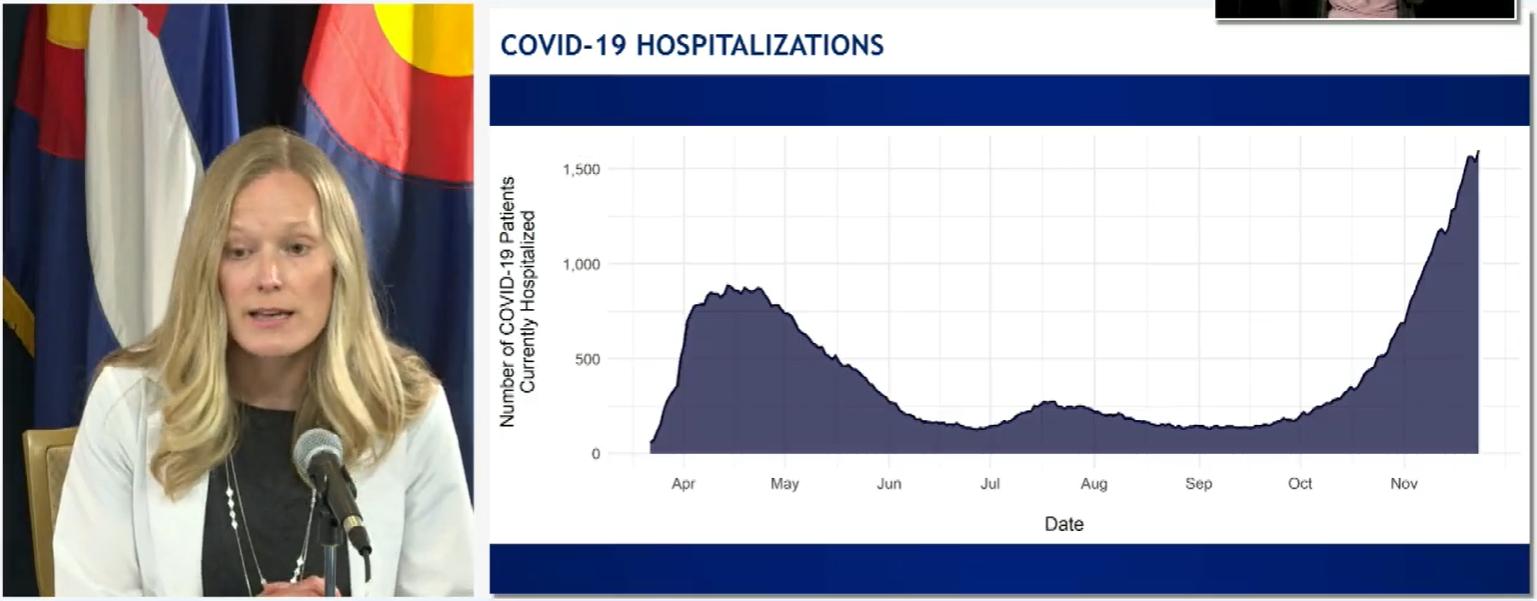 Hospitalizations are also increasing rapidly. Polis said 31 hospitals anticipate staff shortages in the next week, and the number of hospitalizations is double what it was when the pandemic was in its first wave in the spring.