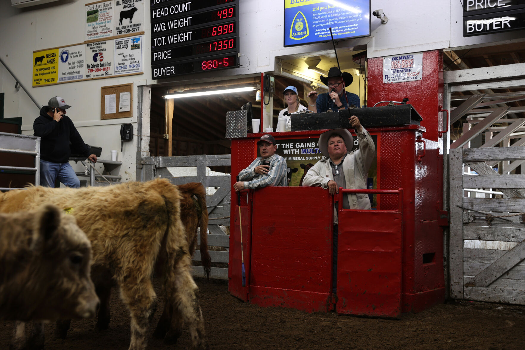 In the small sale barn where the flick of a wrist means a new per-pound value, the climbing prices keep pace with the calves running around.