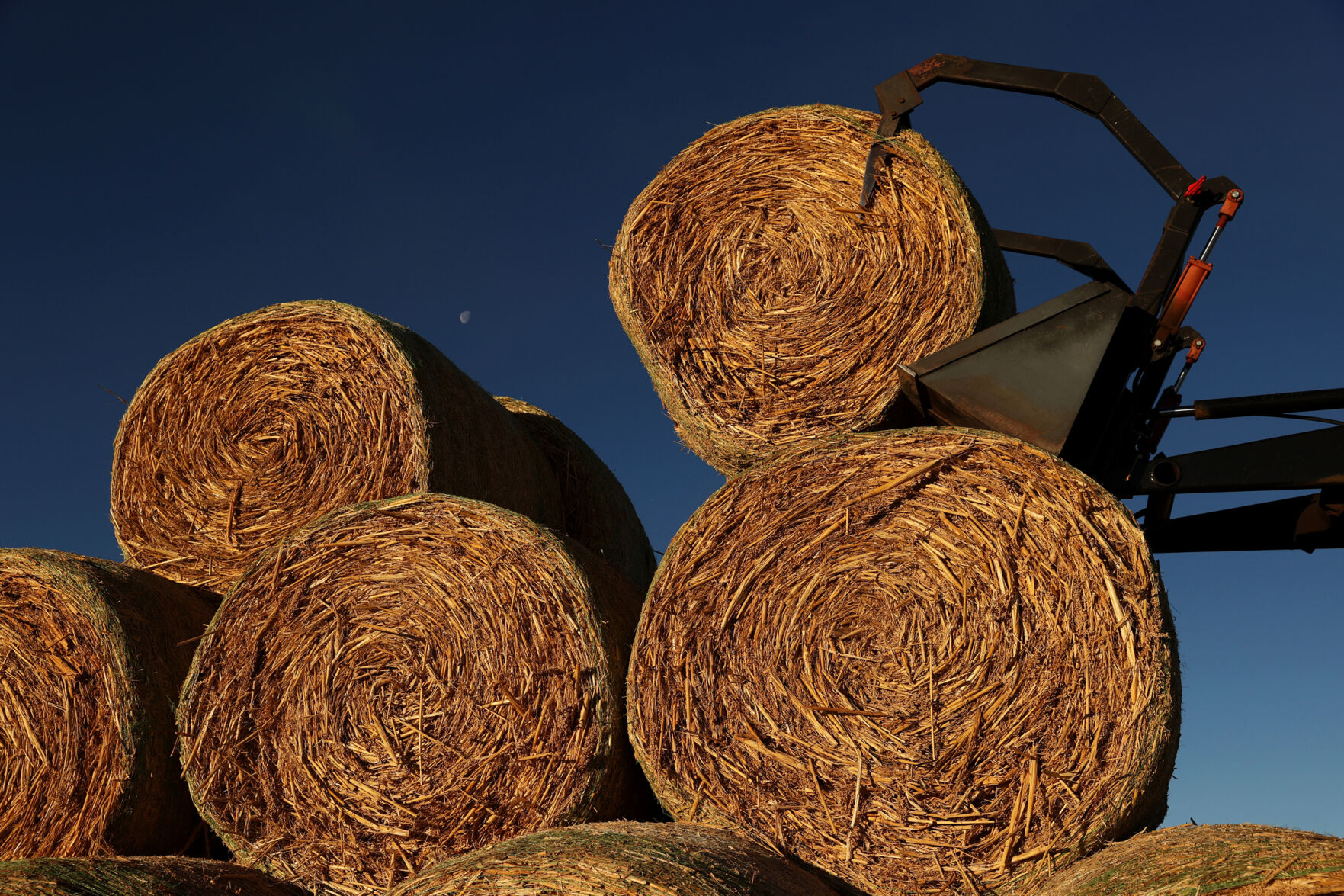 With the push of a button, another 1,000 pound round hay bale is dropped in the desolate field. There’s more bare soil and cacti in the pasture than grass.