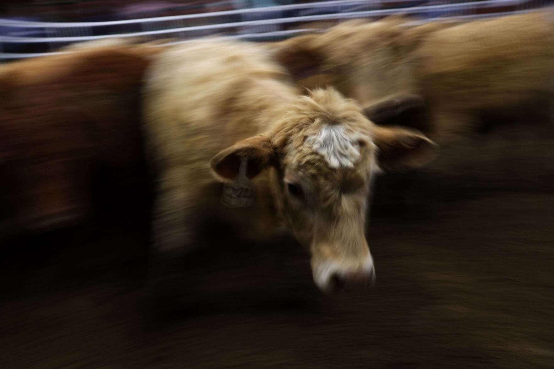 The mass of calves, a cream and rust-colored tornado, swirls around the sale ring, spinning and bouncing from corner to corner, dodging the bid-caller in the middle of the floor. He’s wearing a sweat-stained cowboy hat and waving a sorting stick from one side of the small arena to the other.