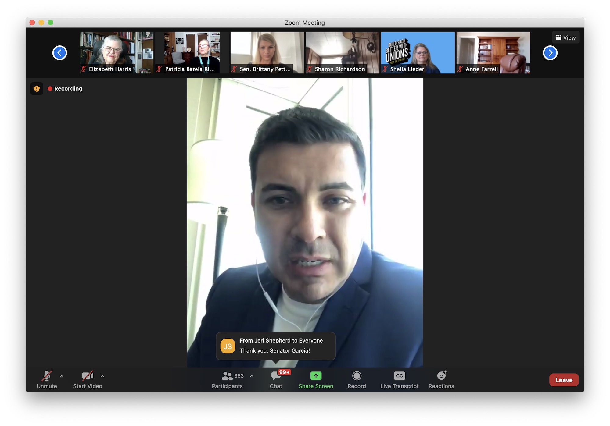 “I really think we did nothing short of save our democracy in this last election,” she said. “We are not out of the woods yet.”