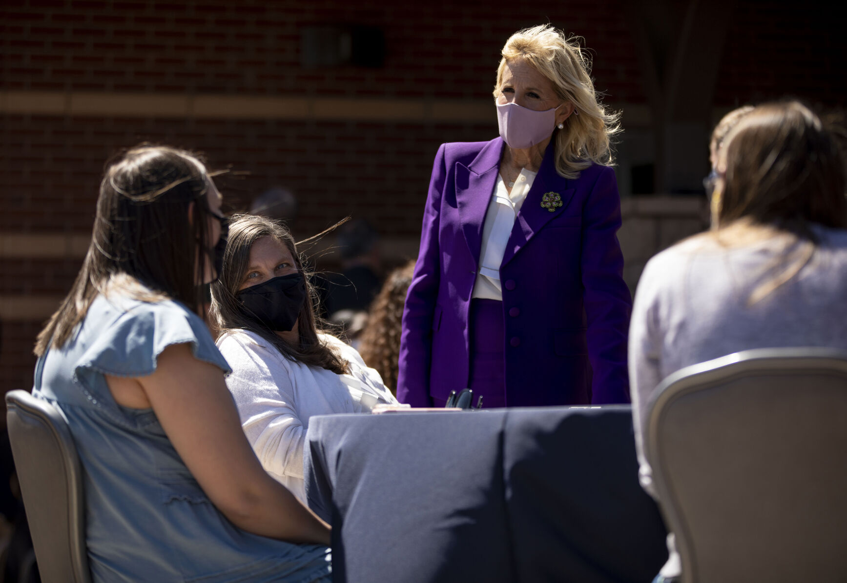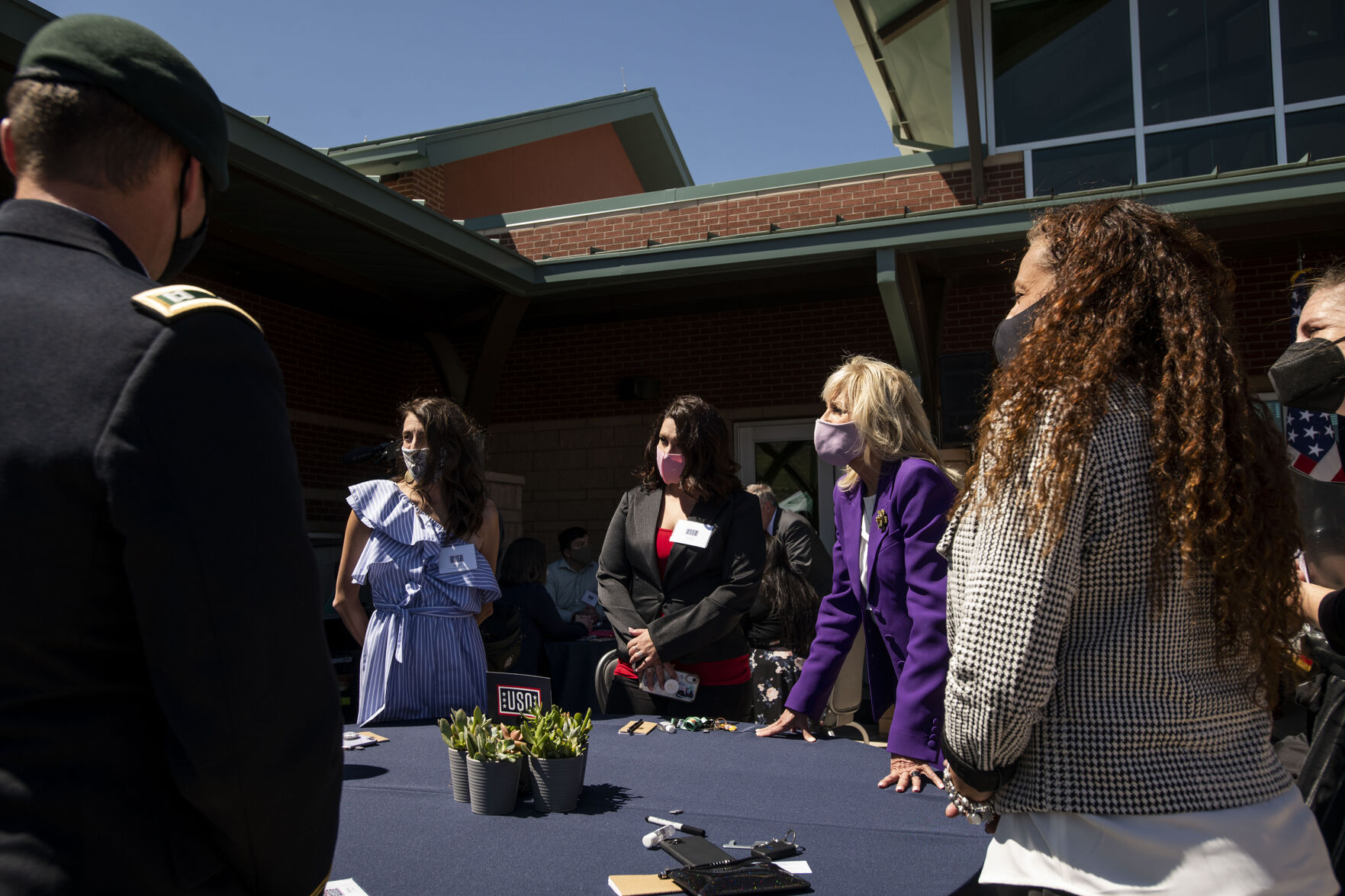 First Lady Jill Biden visited with military spouses during the USO Military Spouse Connection event at Fort Carson military base south of Colorado Springs, Colo., on Thursday, May 6, 2021, to celebrate military spouses ahead of Military Spouse Appreciation Day this Friday. (Video by Skyler Ballard)