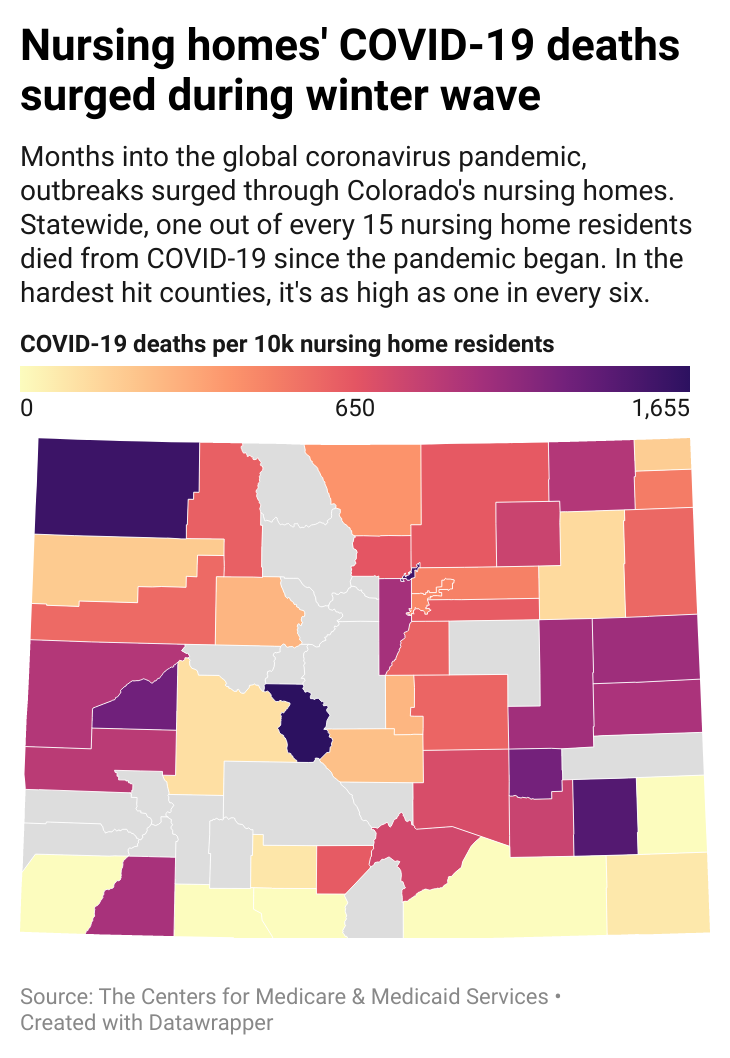The state struggled with scarce testing early in the pandemic, with the state lab unable to keep up with the need. Long wait times for test results developed even after private firms ramped up virus testing. In the fall and winter, deaths in nursing homes began to surge, making surveillance testing an even greater priority. By late December, Colorado had the highest weekly coronavirus death rate among nursing home residents in the country, about twice the national average.