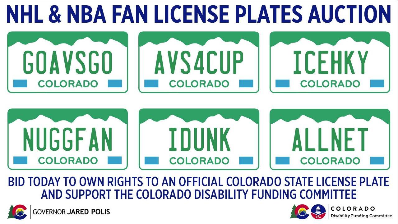 It’s the fourth auction of specialty plates this year, following one in June on miscellaneous plates, another tied to the Avalanche and Nuggets teams making the playoffs, and the 4/20 auction for cannabis-themed plates.