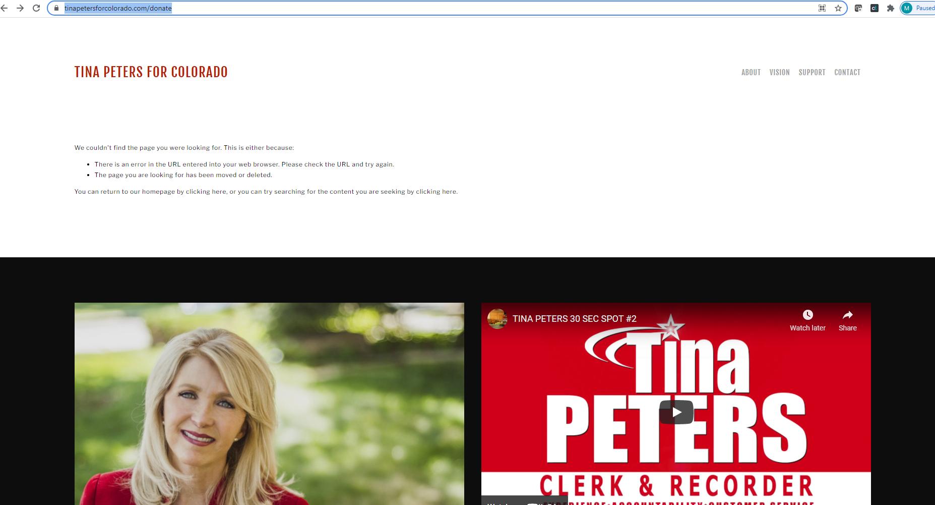 Peters uses two websites: one for a 2022 campaign bid that at one point had a donation page, and a second, for legal expenses, which is the subject of the second Beilfuss complaint, filed Sept. 24. A check of the Peters website shows the donation page was taken down, although it was active in August. The StandWithTina website has an active donation page.