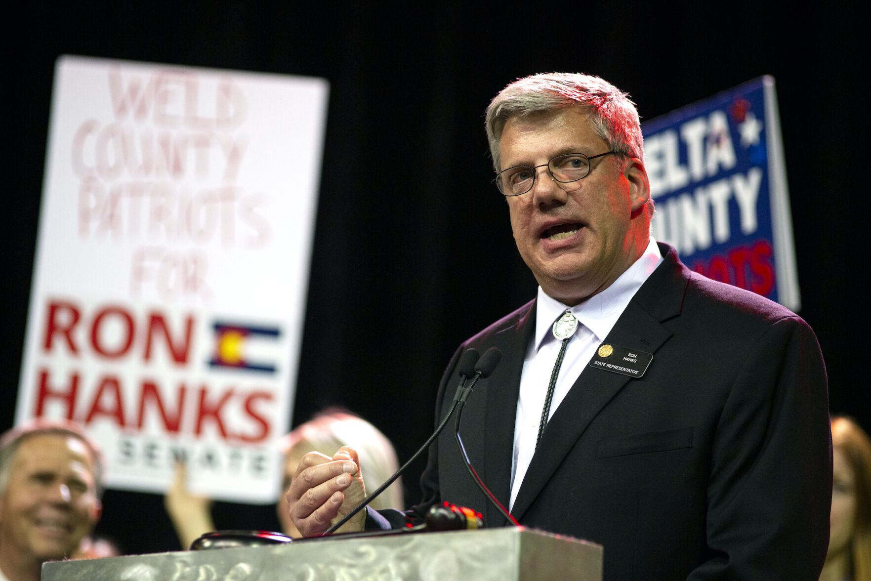 State Rep. Ron Hanks won the top line designation in the Republican primary for on Colorado’s U.S. Senate seat on Saturday at the GOP’s state assembly in Colorado Springs.
