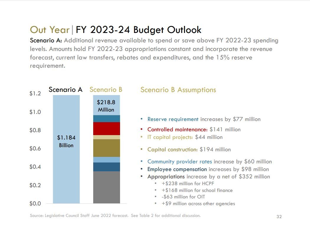 What’s available, over and above required spending and other obligations for 2023-24, under a scenario developed by the economists as well as JBC staff, is about $218.8 million.