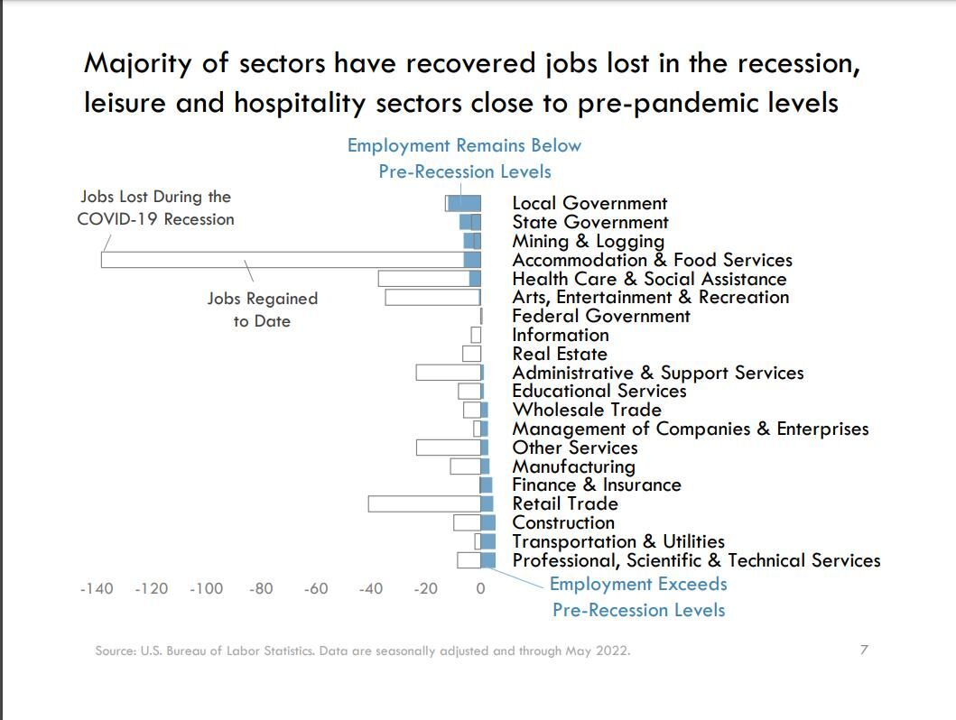 In May, Colorado exceeded its pre-pandemic jobs numbers by 35,800, the forecast said. A few sectors still have with fewer employees than before the pandemic, largely local and state government, mining and logging, as well accommodation and the food sector.