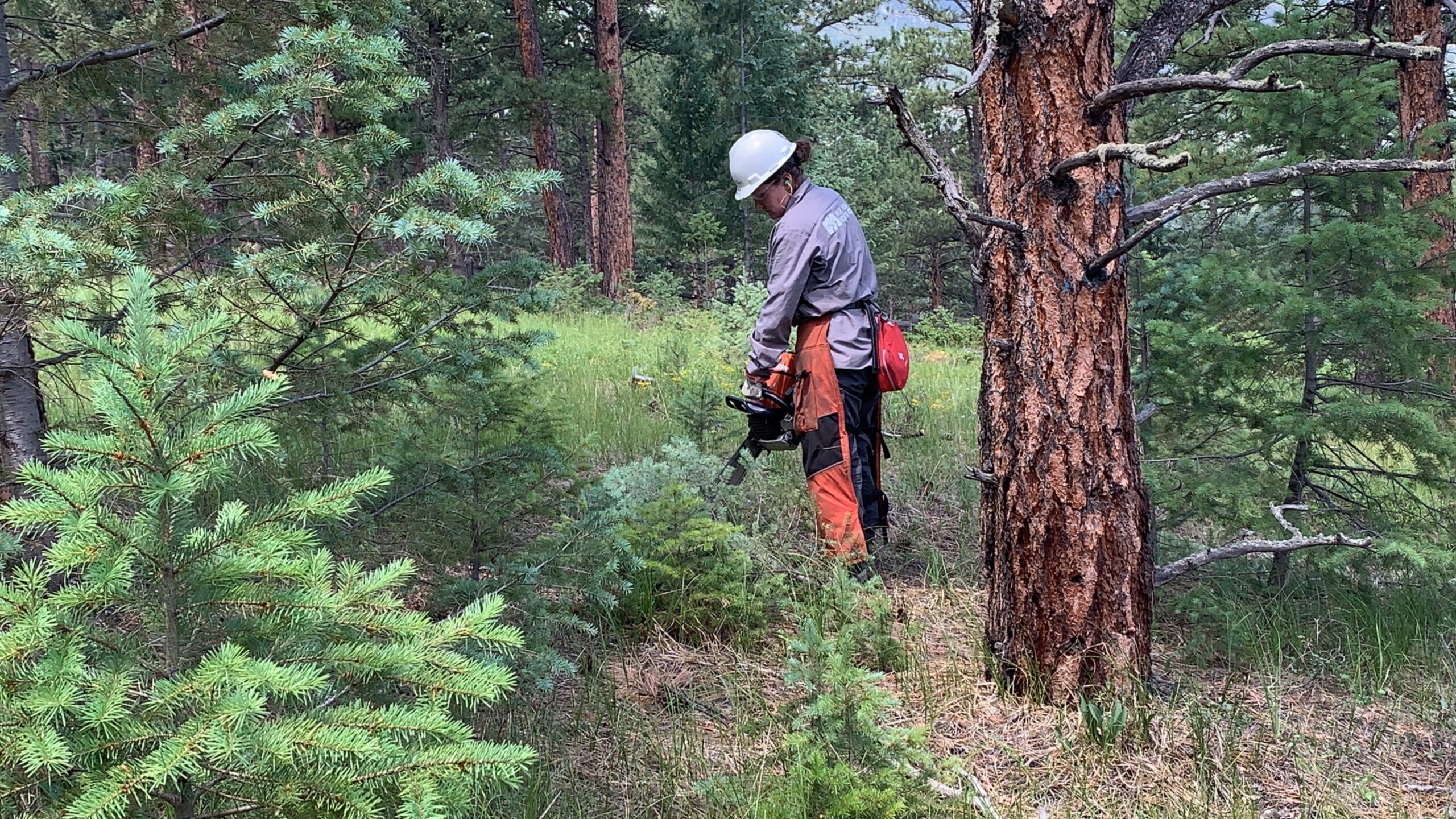 But her work alone isn’t enough. One of the two Denver Mountain Parks visible from her property is very dense with trees.