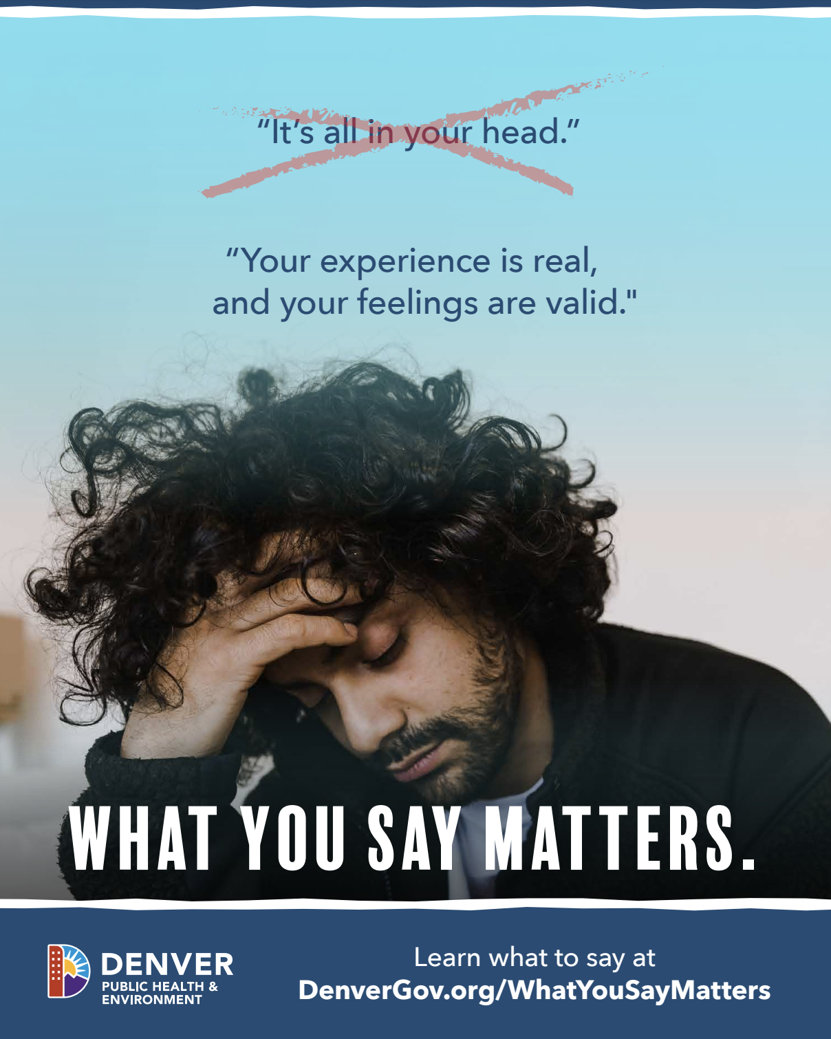 “We hope through this campaign, Denver residents will recognize and fight stigma in their own lives by carefully considering the words they choose when talking about mental health,” he added.