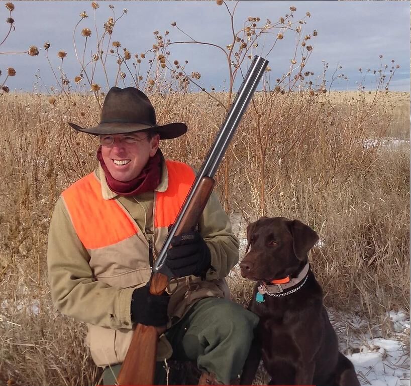 His chocolate lab/retriever’s name is Dagny Taggart, named after the heroine in Atlas Shrugged. She’s good birder. When they go hunting, she’ll point up a perfect shot and he would miss it, and she’d give him a look as if to say, “Dad, really?”