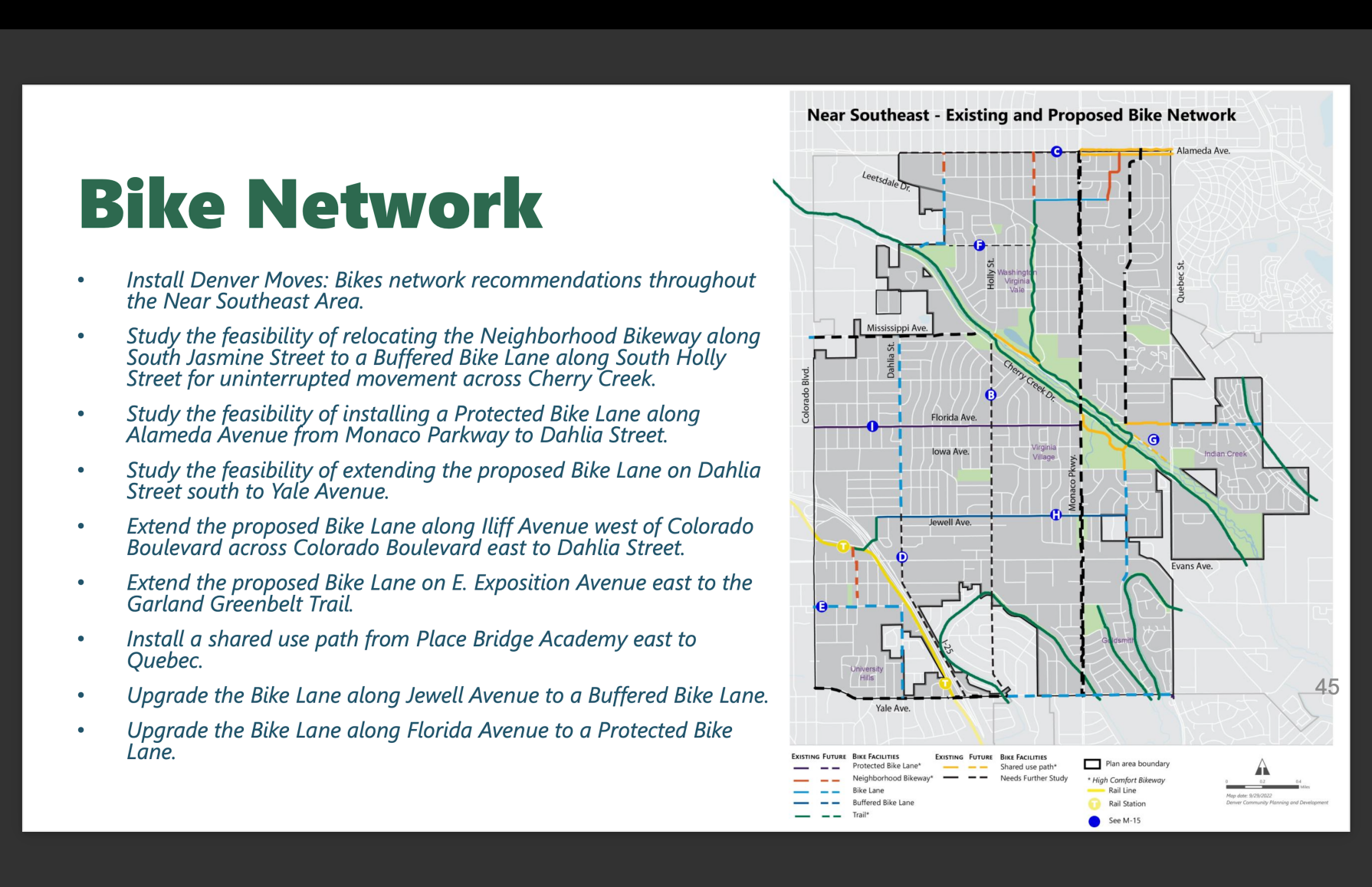 Those include creating a city that is equitable, affordable and inclusive and one that is economically diverse and vibrant. More details on the plan may be found online at denvergov.org including a copy of the full plan. As for the five neighborhoods in the near southeast area plan, city staff identified multiple avenues of improvement including to park and trail access, incorporating mixed-use designs and enhancements to bike and pedestrian safety, among many others.