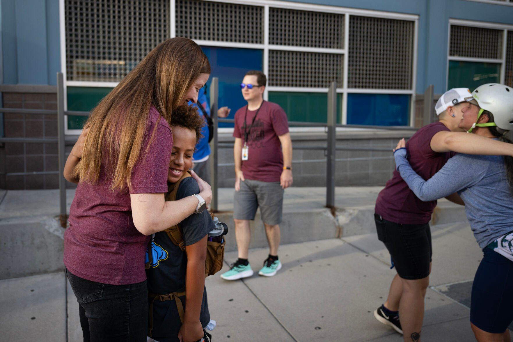 Students raise their hands to answer a question from second grade teacher Julia Behringer during the first day of Denver Public School’s Fall semester on Monday, Aug. 21, 2023, at Downtown Denver Expeditionary School in Denver, Colo.(Timothy Hurst/Denver Gazette)Timothy Hurst/Denver GazetteA student raises their hand as second grade teacher Julia Behringer introduces her students to their first activity during the first day of Denver Public School’s Fall semester on Monday, Aug. 21, 2023, at Downtown Denver Expeditionary School in Denver, Colo.(Timothy Hurst/Denver Gazette)Timothy Hurst/Denver GazetteSecond grade teaching assistant Mia Madden helps Henry Trujillo get his cubby labeled with his name during the first day of Denver Public School’s Fall semester on Monday, Aug. 21, 2023, at Downtown Denver Expeditionary School in Denver, Colo.(Timothy Hurst/Denver Gazette)Timothy Hurst/Denver GazetteFifth graders Lou Lou Baehre, left, and Kaedon Garb run to the middle of the room to grab sheets of paper that they’ll bring back to their groups during a game they’re calling “Norm Match Dash” in Z Flatley’s movement class on the first day of Denver Public School’s Fall semester on Monday, Aug. 21, 2023, at Downtown Denver Expeditionary School in Denver, Colo.(Timothy Hurst/Denver Gazette)Timothy Hurst/Denver GazetteFifth grader Marcus Johnson runs to the middle of the room to grab a sheet of paper that he’ll bring back to his group during a game they’re calling “Norm Match Dash” in Z Flatley’s movement class on the first day of Denver Public School’s Fall semester on Monday, Aug. 21, 2023, at Downtown Denver Expeditionary School in Denver, Colo.(Timothy Hurst/Denver Gazette)Timothy Hurst/Denver GazettePhoenix Lawson holds her parents’ hands, Lauri Keener and David Lawson, as they cross the street to drop Phoenix off with her classmates during the first day of Denver Public School’s Fall semester on Monday, Aug. 21, 2023, at Downtown Denver Expeditionary School in Denver, Colo.(Timothy Hurst/Denver Gazette)Timothy Hurst/Denver GazetteLiteracy and math interventionist Becky Diehl hugs former student Felix Jones, 10, who is getting ready to head to his first day at McAuliffe Manual Middle School after helping his parents drop off his younger brother Omar Jones, not pictured, during the first day of Denver Public School’s Fall semester on Monday, Aug. 21, 2023, at Downtown Denver Expeditionary School in Denver, Colo.(Timothy Hurst/Denver Gazette)Timothy Hurst/Denver GazetteFILE PHOTO: Lauri Keener hugs her daughter Phoenix Lawson before they head across the street to drop Phoenix off with her classmates during the first day of Denver Public School’s Fall semester on Monday, Aug. 21, 2023, at Downtown Denver Expeditionary School in Denver, Colo.(Timothy Hurst/Denver Gazette)Timothy Hurst/Denver GazetteCrossing Guard Alison Torvik greets students and parents during the first day of Denver Public School’s Fall semester on Monday, Aug. 21, 2023, at Downtown Denver Expeditionary School in Denver, Colo.(Timothy Hurst/Denver Gazette)Timothy Hurst/Denver GazetteBrent Westrop, Executive Director at Downtown Denver Expeditionary School, gets high fives with first graders as they head into school during the first day of Denver Public School’s Fall semester on Monday, Aug. 21, 2023, at Downtown Denver Expeditionary School in Denver, Colo.(Timothy Hurst/Denver Gazette)Timothy Hurst/Denver GazetteSecond grade teacher Julia Behringer introduces herself to her students during the first day of Denver Public School’s Fall semester on Monday, Aug. 21, 2023, at Downtown Denver Expeditionary School in Denver, Colo.(Timothy Hurst/Denver Gazette)Timothy Hurst/Denver GazetteSecond grade teacher Julia Behringer introduces her students to their first activity during the first day of Denver Public School’s Fall semester on Monday, Aug. 21, 2023, at Downtown Denver Expeditionary School in Denver, Colo.(Timothy Hurst/Denver Gazette)Timothy Hurst/Denver Gazette