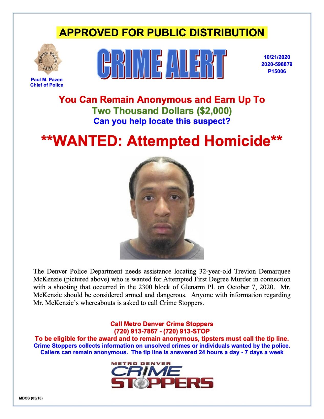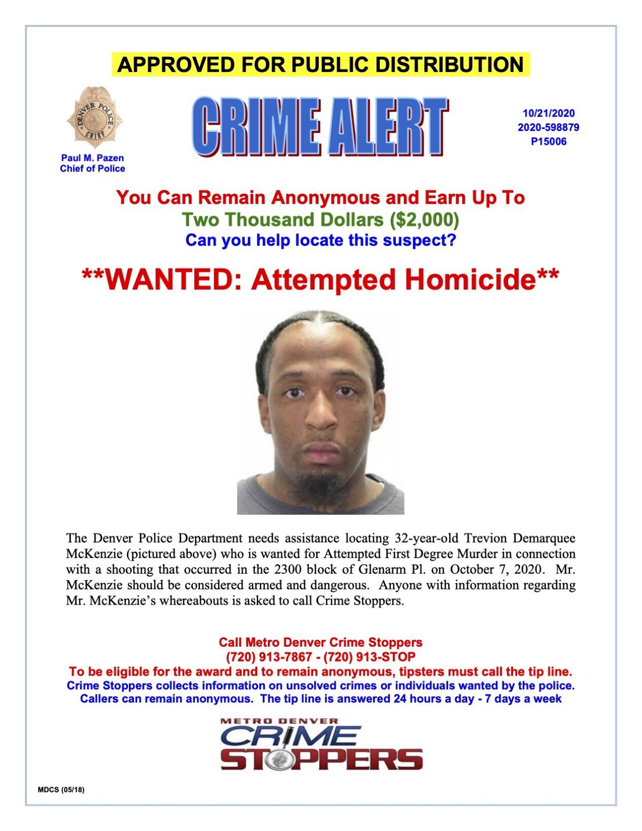 Denver Police searching for attempted murder suspect