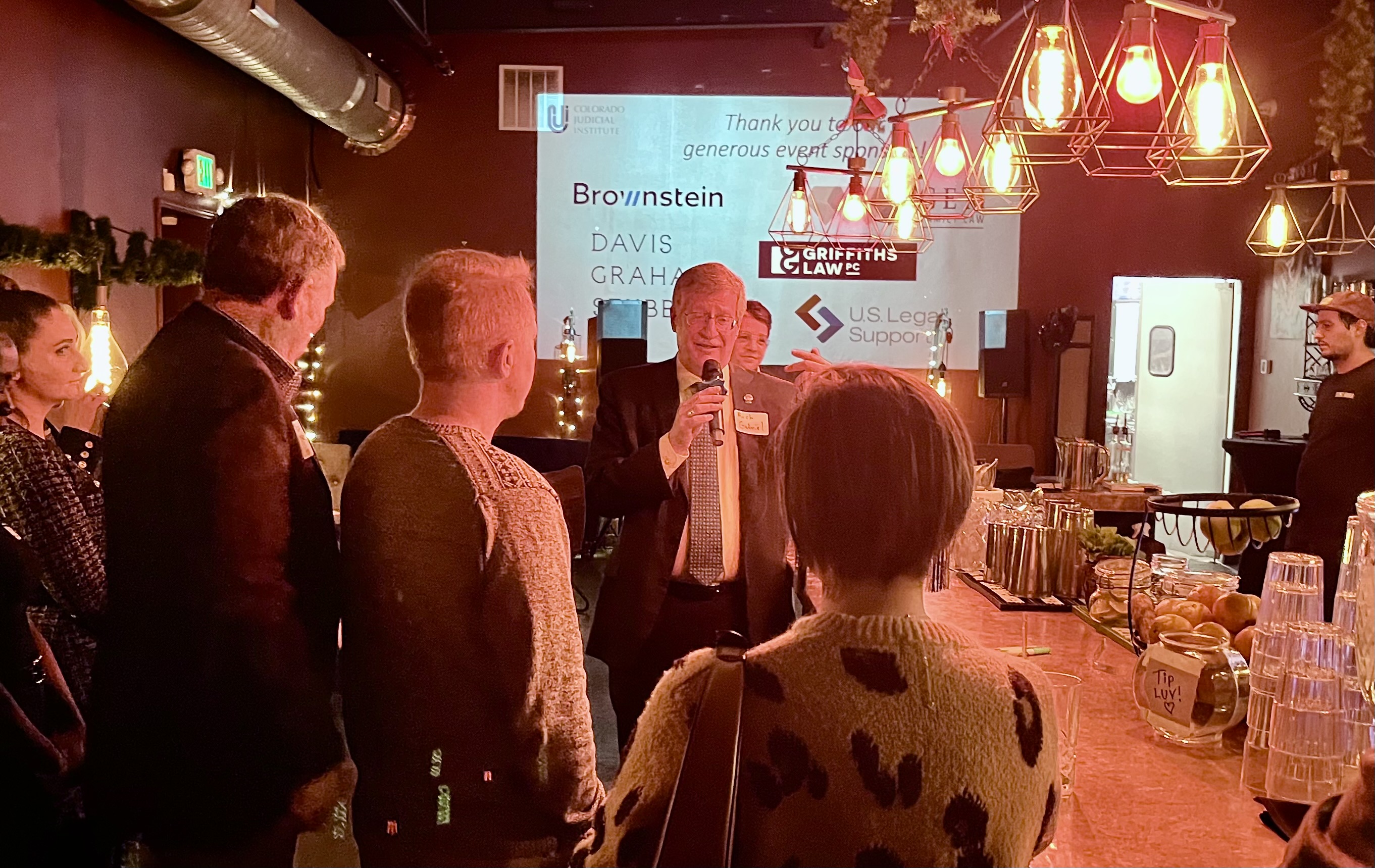 ? Last week, Justice Richard L. Gabriel spoke at a happy hour for young attorneys in Denver’s RINO neighborhood, sponsored in part by the Colorado Judicial Institute. Gabriel, while discussing the judicial advocacy group’s mission, also provided his broader thoughts on the state of civil discourse and of the need for trust in the judiciary.