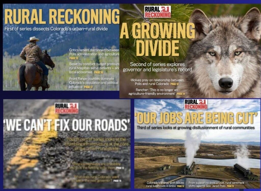 Rural Reckoning Series: The four-week Rural Reckoning series examines critical, often overlooked issues facing rural Colorado, where challenges to healthcare access, affordable housing, agricultural sustainability, and population growth are compounded by a growing disconnect from the state’s political and economic power base along the Front Range.