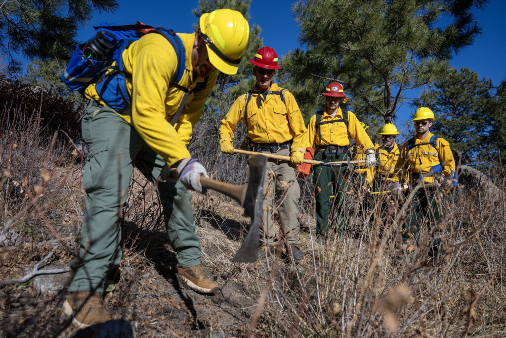 “This is basically the nitty-gritty of wildland firefighting,” said Tanner Webb of the Colorado Division of Fire Prevention and Control. “We’re teaching these students the basics: digging line, getting down to the bare minimal soil, cutting away brush with chain saws.”