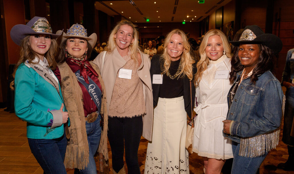Miss Evergreen Rodeo, Olivia Zuber; Larimer County Rodeo Queen, Addyson Gregory; Kristen Manzo; Nancy Kimball; Stacy Hawes; and Douglas County Fair and Rodeo Queen, Taina MacDonald. Cowgirls & Cocktails event, hosted by The National Western Honoring the Legacy Campaign, at the Legacy Building at the National Western Center in Denver, Colorado, on Thursday, Jan. 22, 2026.