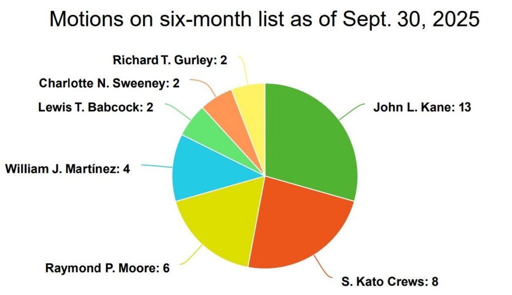 Crews, with eight motions on his list, decided the majority of them after the reporting period ended. But a handful of constitutional rights cases are awaiting rulings for motions that date to mid-2024.
