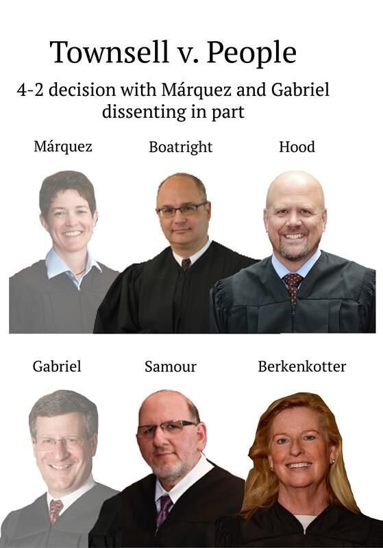 Justice Richard L. Gabriel, writing for himself and Chief Justice Monica M. Márquez, saw otherwise. He noted the judicial form used by self-represented defendants does not direct them to describe how their case was harmed. Nonetheless, Gabriel believed Townsell adequately explained how his case would have been different with better legal representation.
