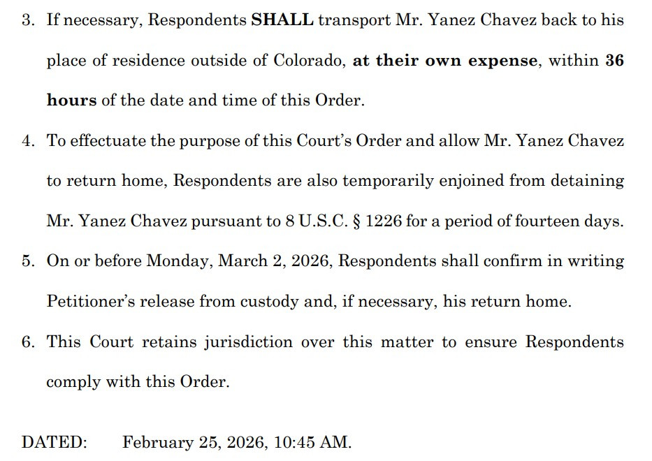 • Readers are likely aware that Colorado’s federal district court is facing a flood of “habeas corpus” petitions from those in immigration detention. The most common set of allegations is that the government is improperly denying bond hearings to people who are eligible for them by law. Colorado’s judges, like the vast majority of their peers around the country, have agreed with that argument.