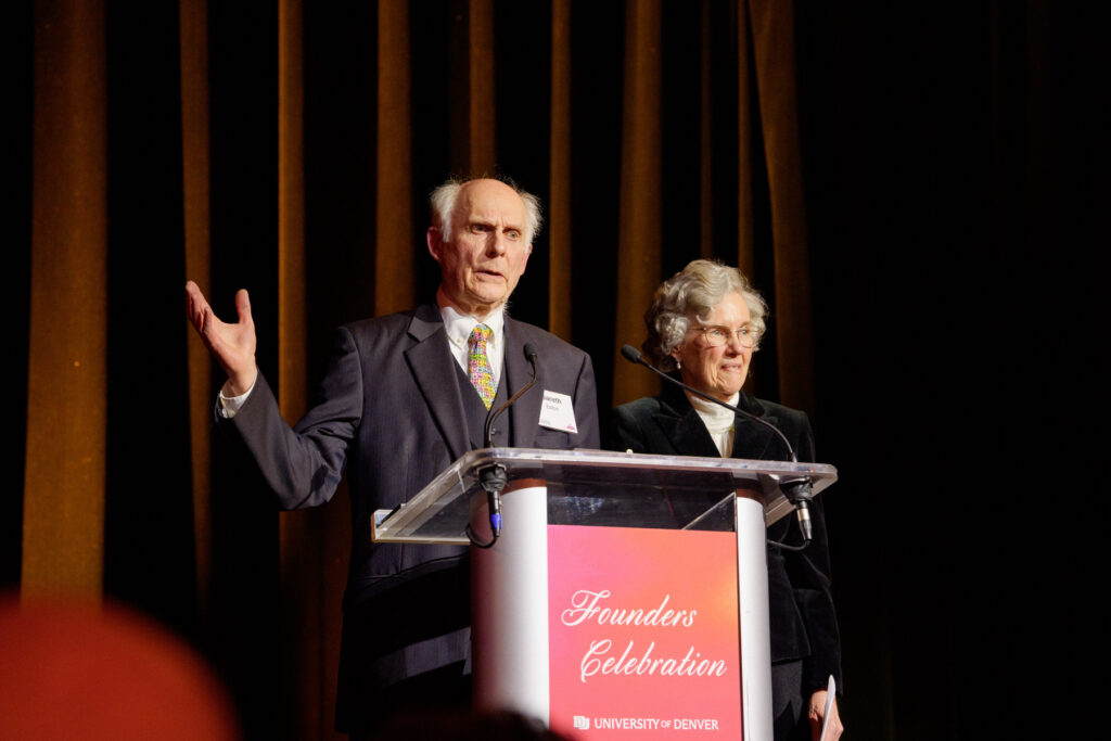 Also receiving Founders Medals were Vicki and Trygve Myhren. A prominent figure in the news and cable television fields, Trygve Myhren is chair emeritus of the DU board of trustees, having served on it since 1996; his wife is the founder and namesake for the Victoria H. Myhren Gallery on the DU campus.