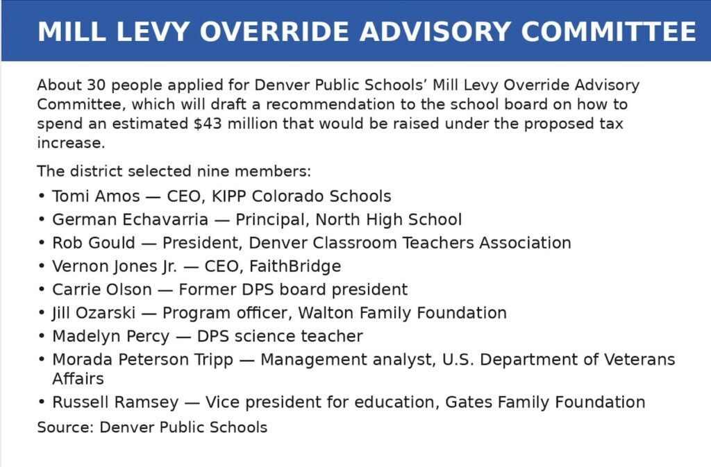 A newly appointed Mill Levy Override Advisory Committee has been tasked with deciding how Denver Public Schools should spend more than $40 million in additional revenue, should voters approve the tax hike in November.